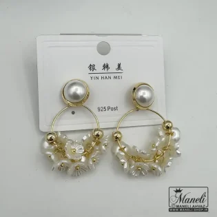 گوشواره طلایی و سفید با گلهای ریز سفید وپایه ی نقره|