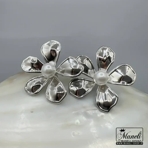 گوشواره میخی طرح گل سیلور با مروارید سفید|14040739