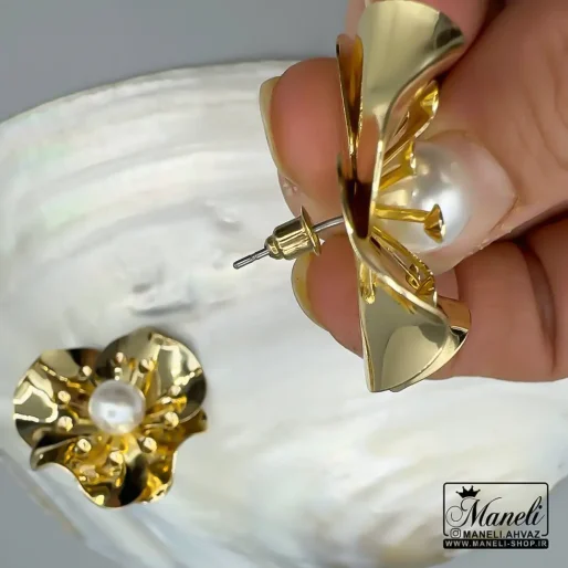 گوشواره طلایی گل میخی با ترکیب مروارید|14040743