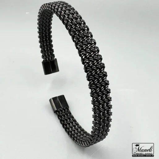 دستبند بنگل حصیری مردانه مشکی 8 میل | استیل رنگ ثابت 14040427
