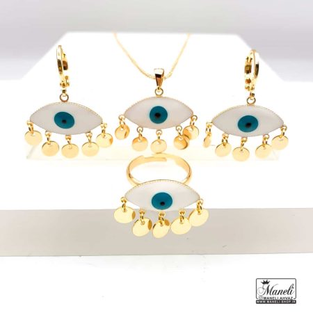 ست گردنبند، گوشواره و انگشتر چشم نظر آویز دار – استیل