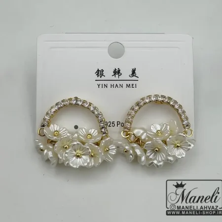 گوشواره طلایی و سفید با گلهای ریز سفید وپایه ی نقره|