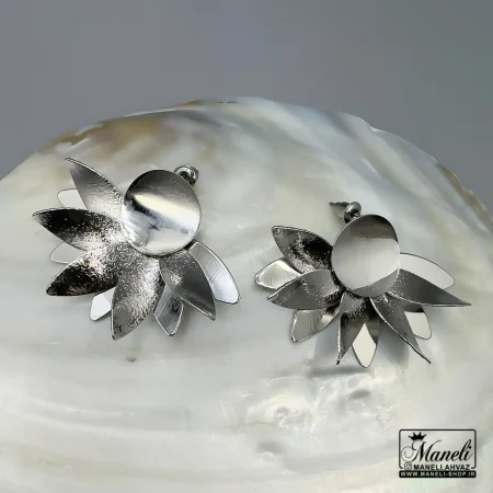 گوشواره میخی طرح برگ گل سیلور|14040738
