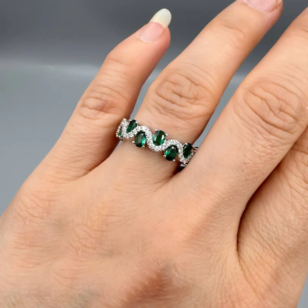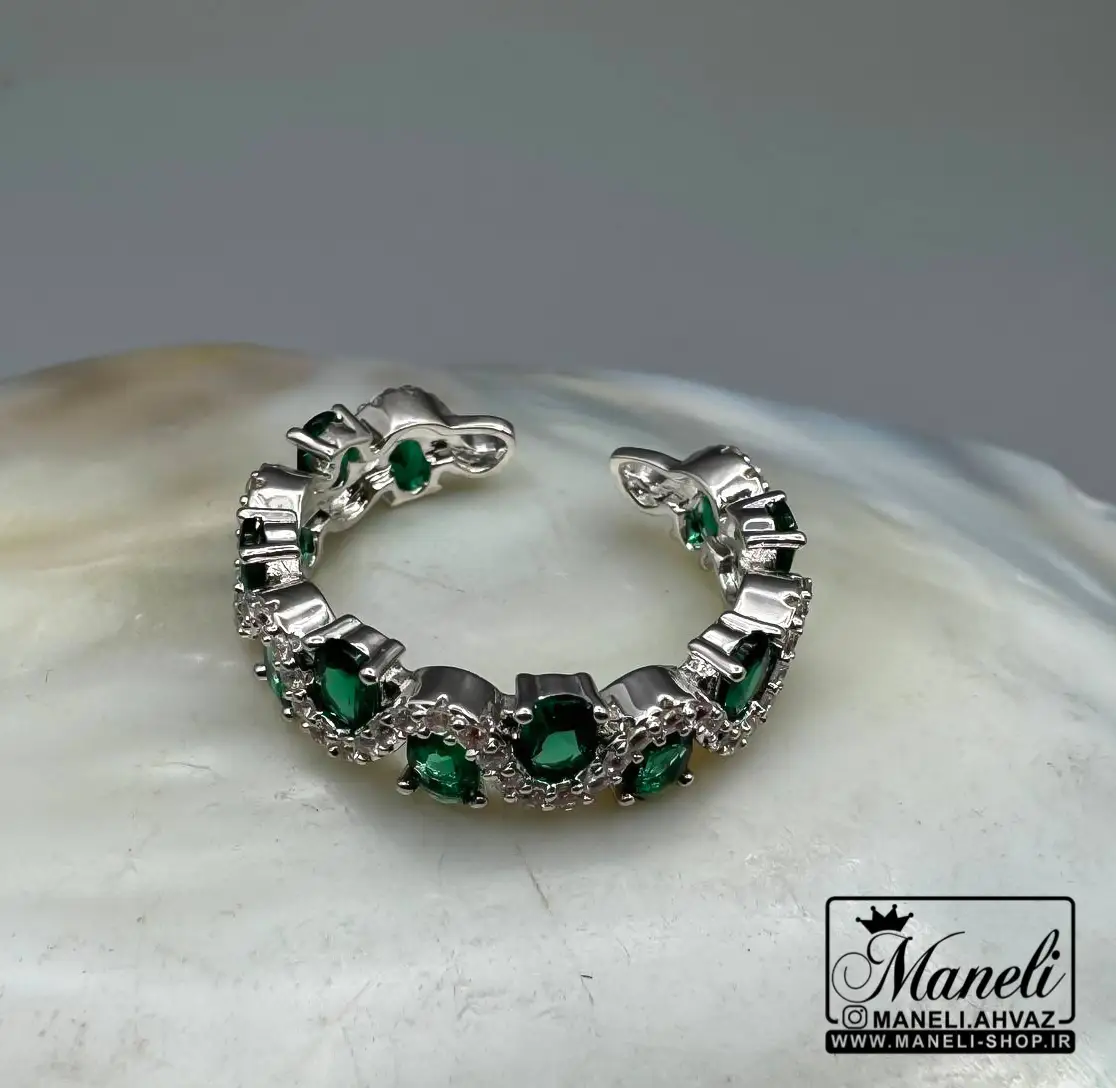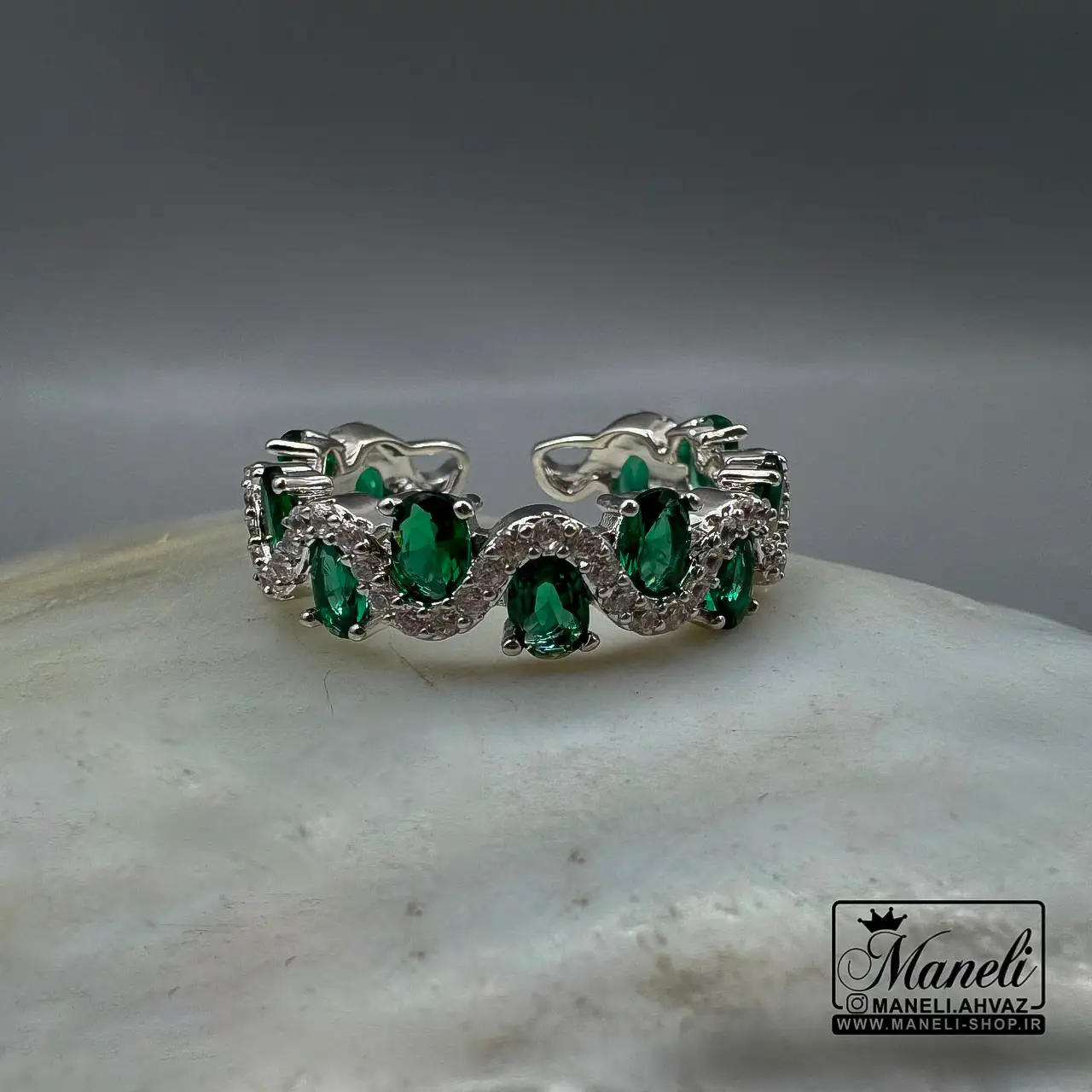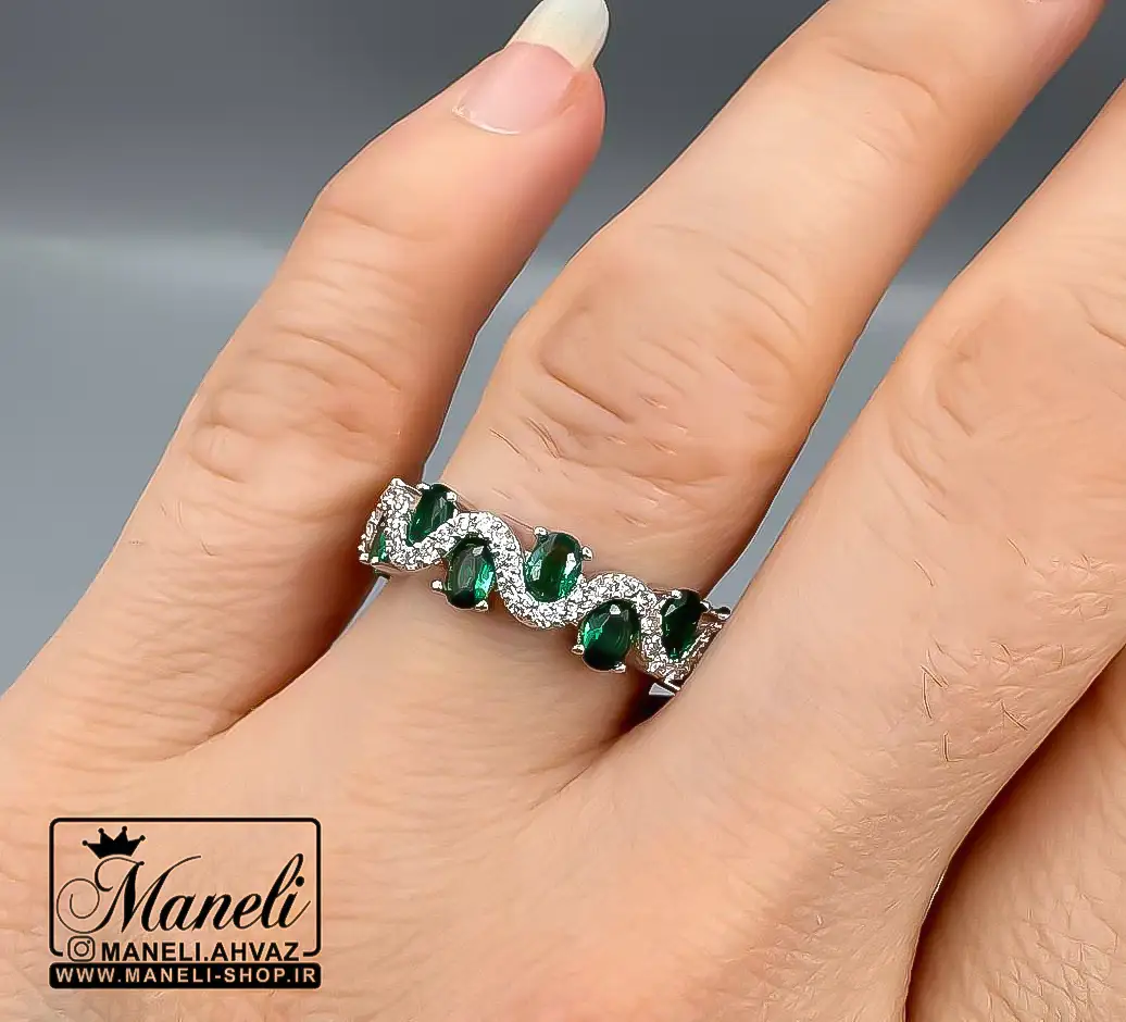 انگشتر زنانه رنگ ثابت با نگین سبز جواهری زیبا|14040952