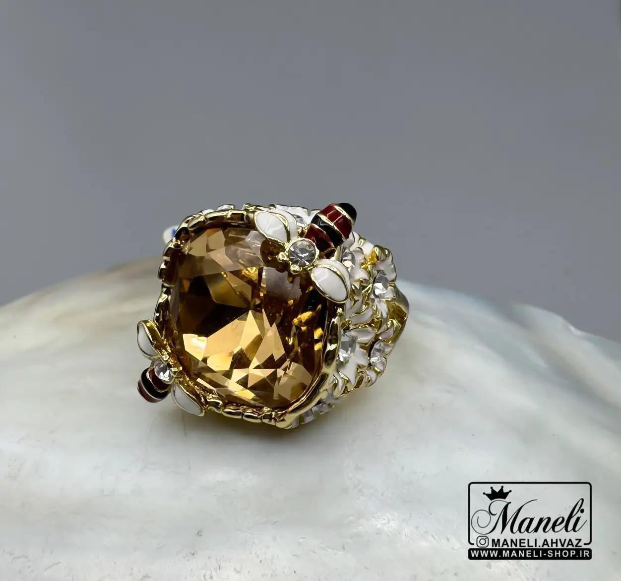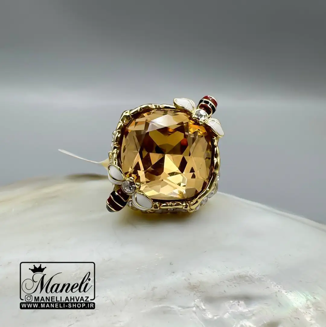 انگشتر زنانه رنگ ثابت با نگین سوارسکی شامپاینی زیبا|14040951