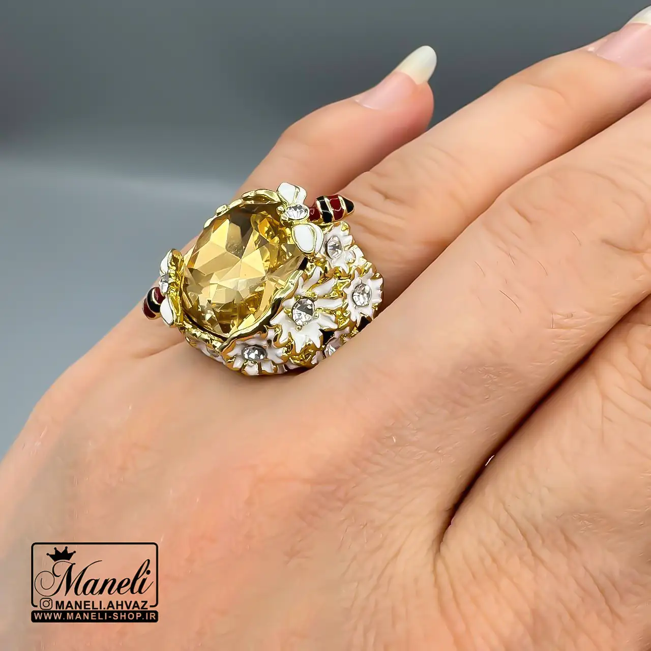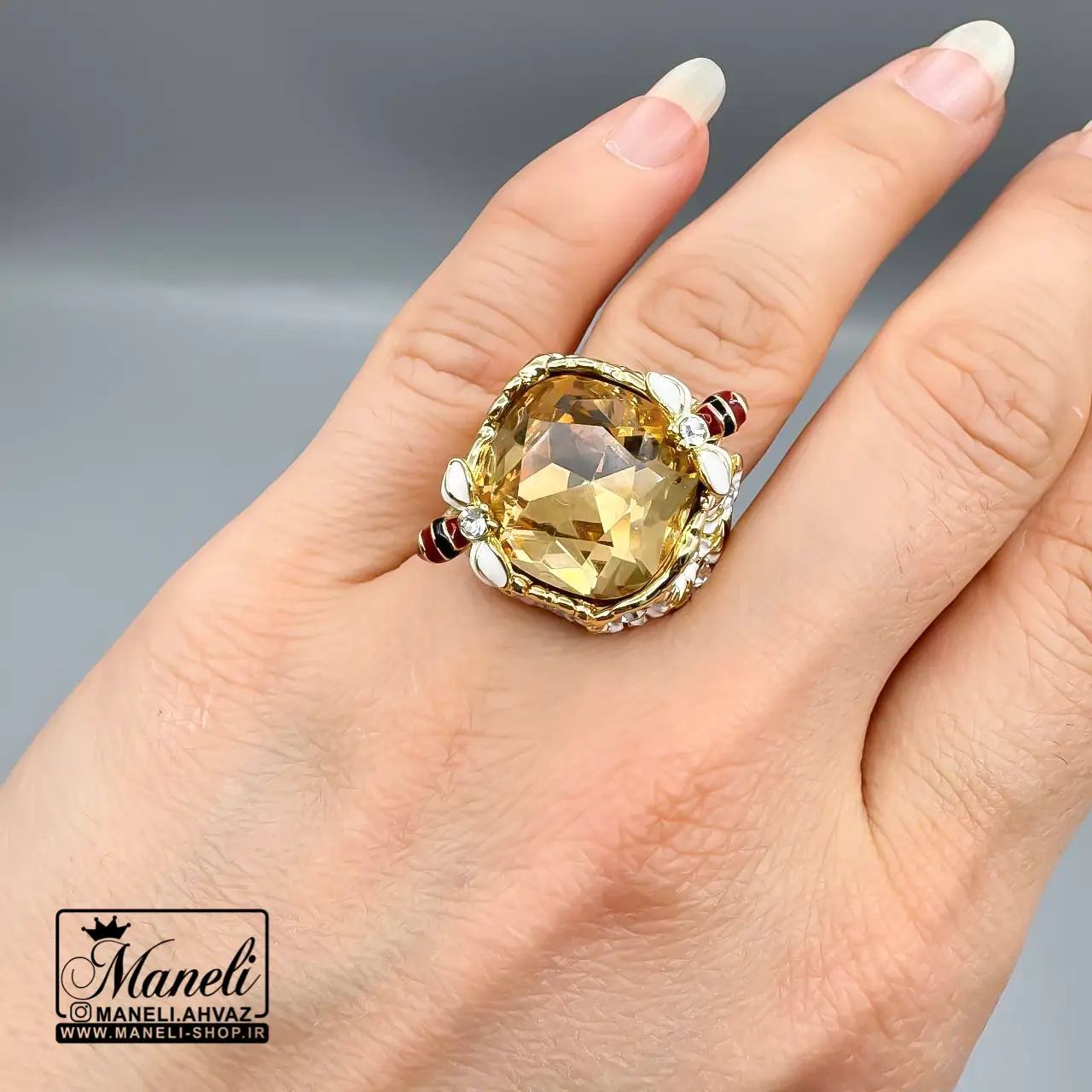 این انگشتر خاص زنانه، با طراحی هنرمندانه و نگین جواهری درخشان خود، به گونهای ساخته شده است که نگاه هر بینندهای را به خود خیره کند. رنگ طلایی درخشان آن، حسی از لوکس بودن و وقار را به دستان شما میبخشد و نگین کار شده با ظرافتی بینظیر، تلالوئی خیرهکننده ایجاد میکند. این زیبایی جواهری، آن را به انتخابی ایدهآل برای مجالس رسمی، مهمانیها یا حتی استفاده روزمره تبدیل میکند تا همواره در مرکز توجه باشید.