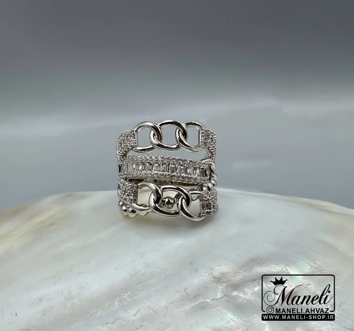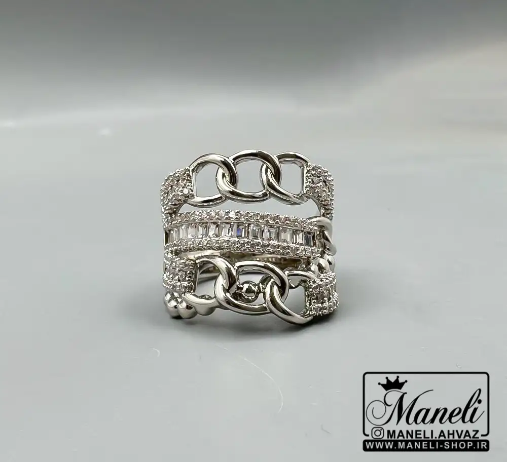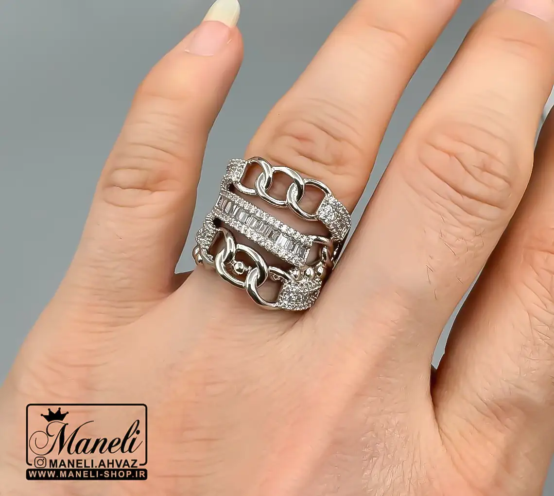 نقطه قوت اصلی این انگشتر زنانه، نگین‌های درخشان و باکیفیت آن است که با هر حرکت دست، نوری خیره‌کننده را بازتاب می‌دهند. این نگین‌ها به گونه‌ای ماهرانه کار گذاشته شده‌اند که علاوه بر زیبایی، دوام و ماندگاری بالایی نیز داشته باشند و تا مدت‌ها درخشش روز اول خود را حفظ کنند. این طراحی خاص، آن را برای استفاده در مجالس رسمی، مهمانی‌ها و حتی استفاده روزمره مناسب می‌سازد.
