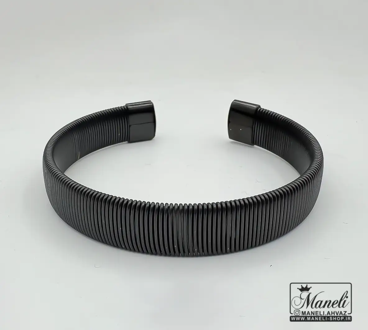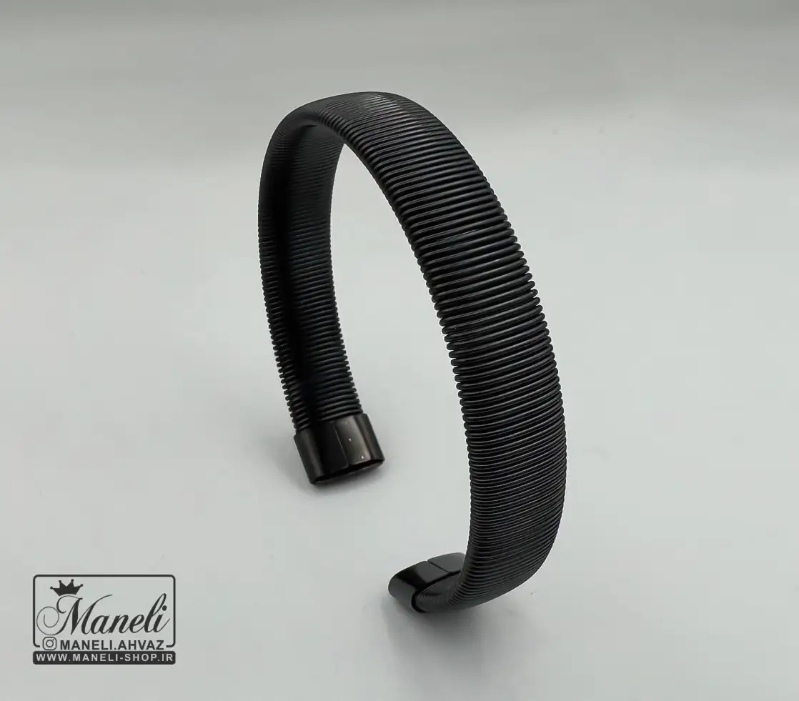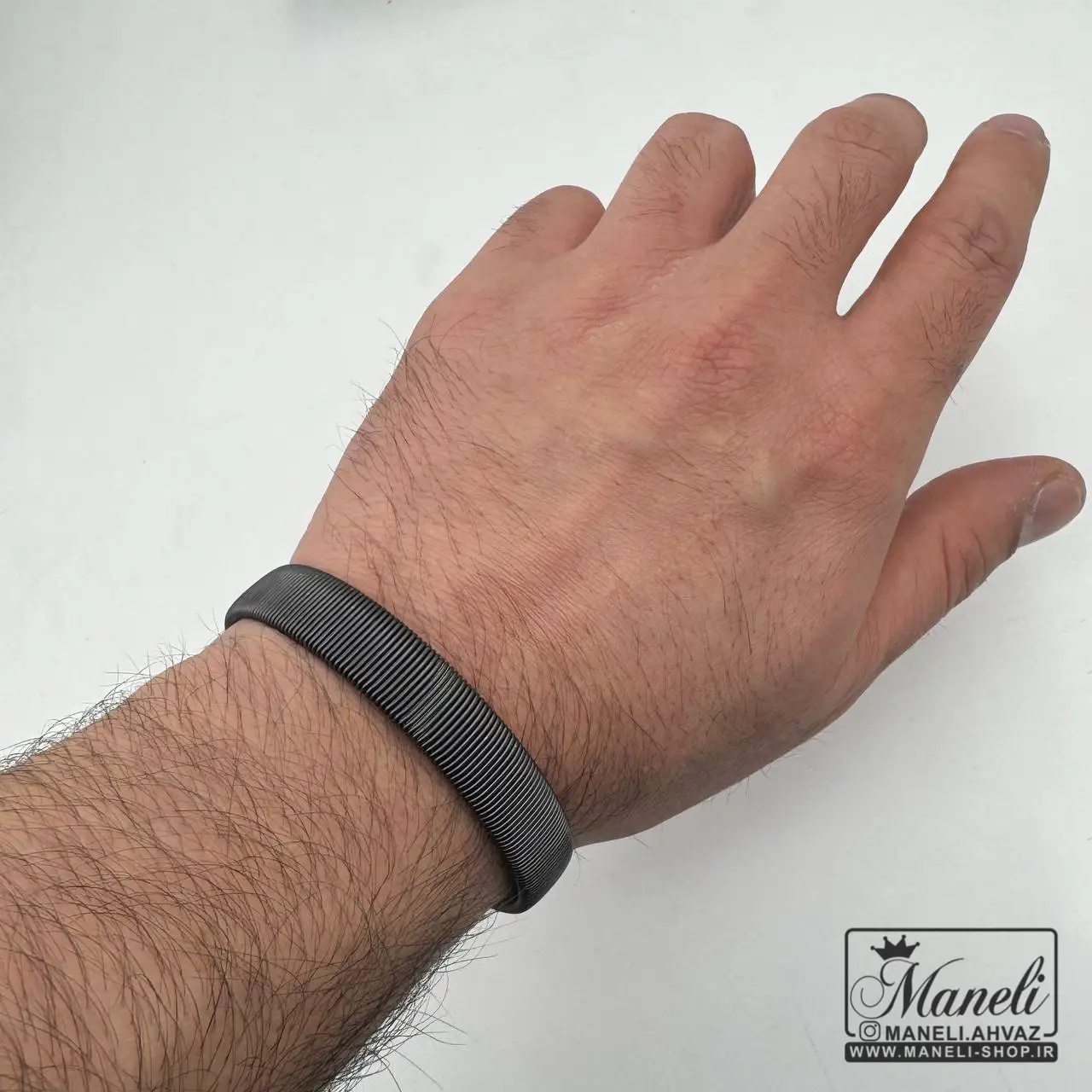 دستبند بنگل پهن مردانه حصیری مشکی فریسایز