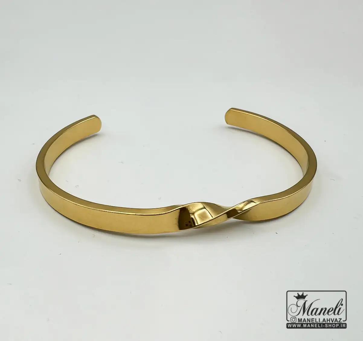 دستبند بنگل مردانه پیچی استیل طلایی: اوج درخشش و اصالت در استایل مردانه