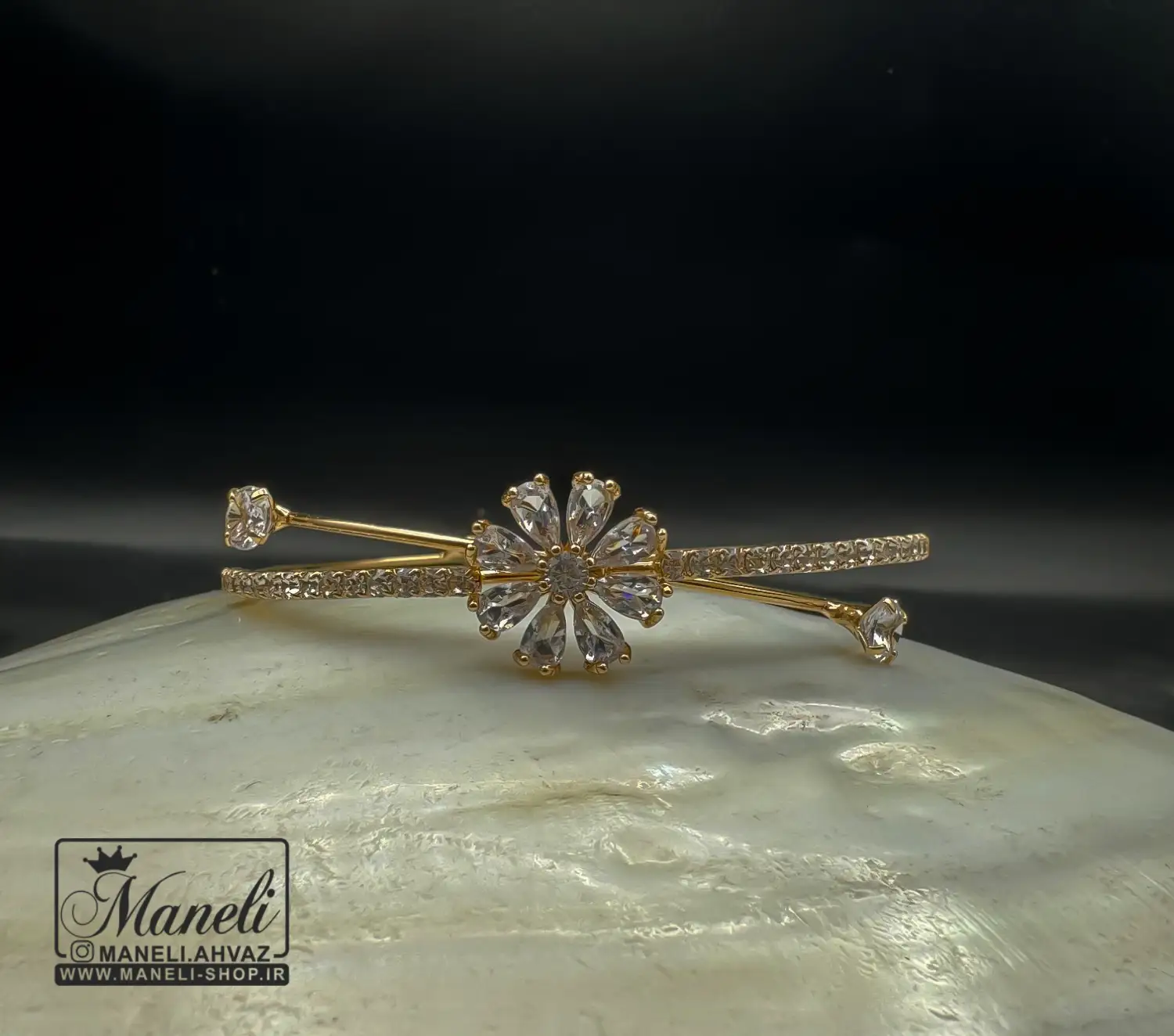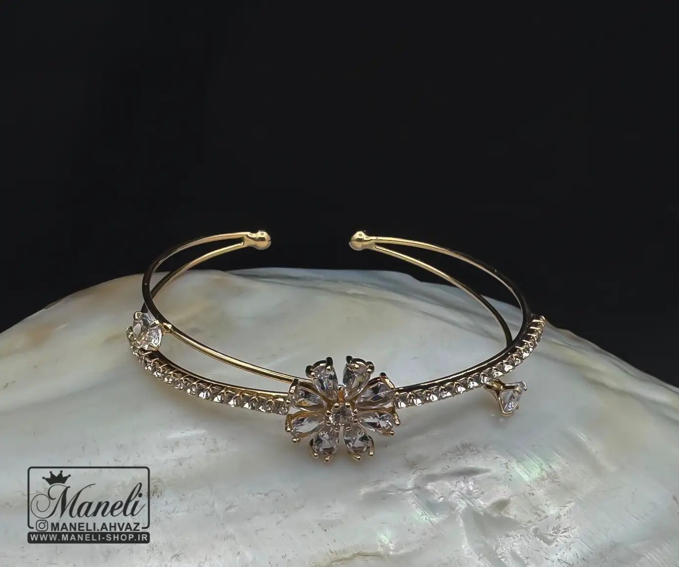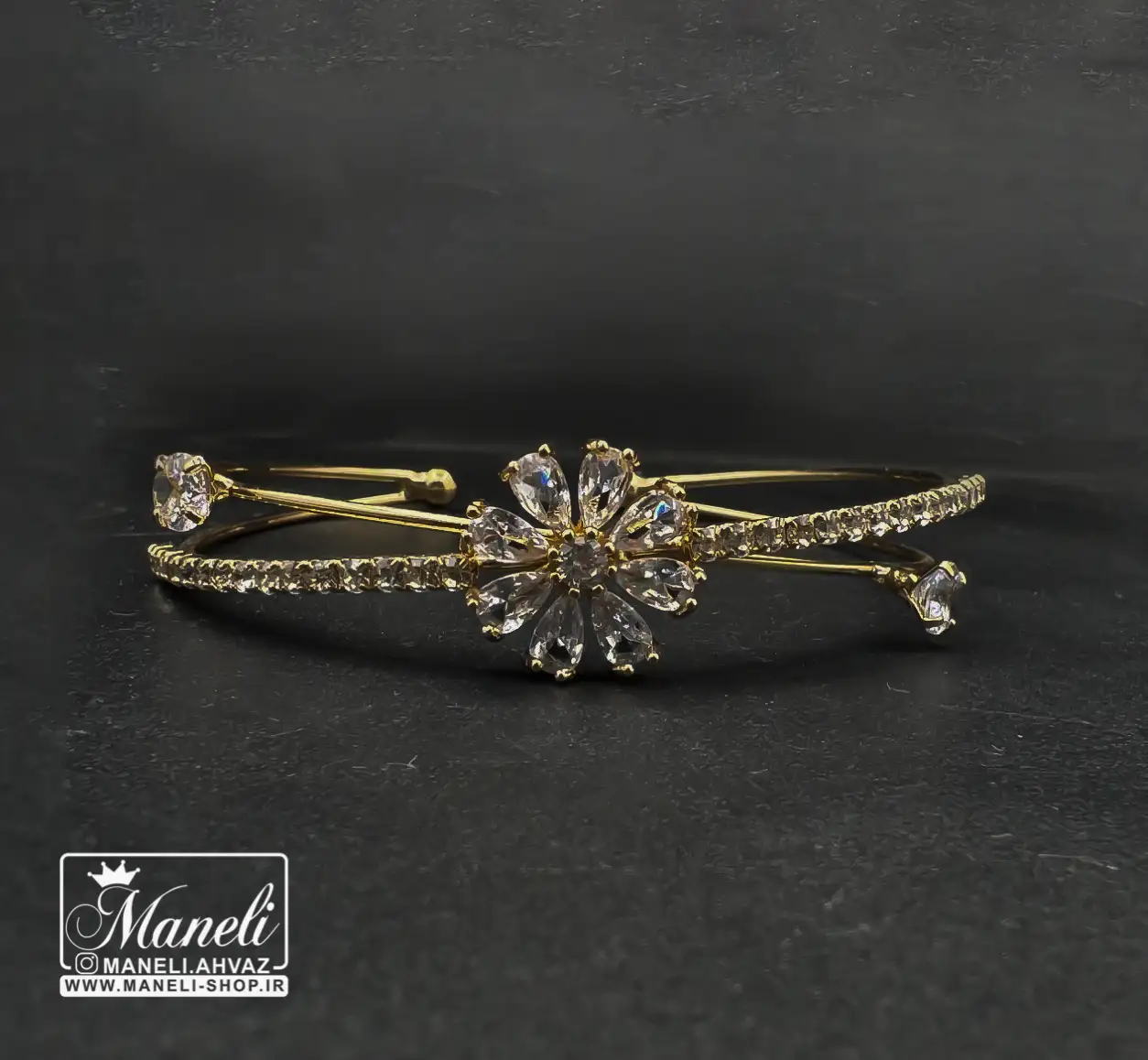دستبند دخترانه طلایی با نگین باگتی فریسایز