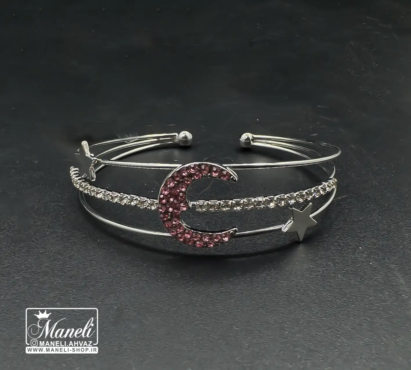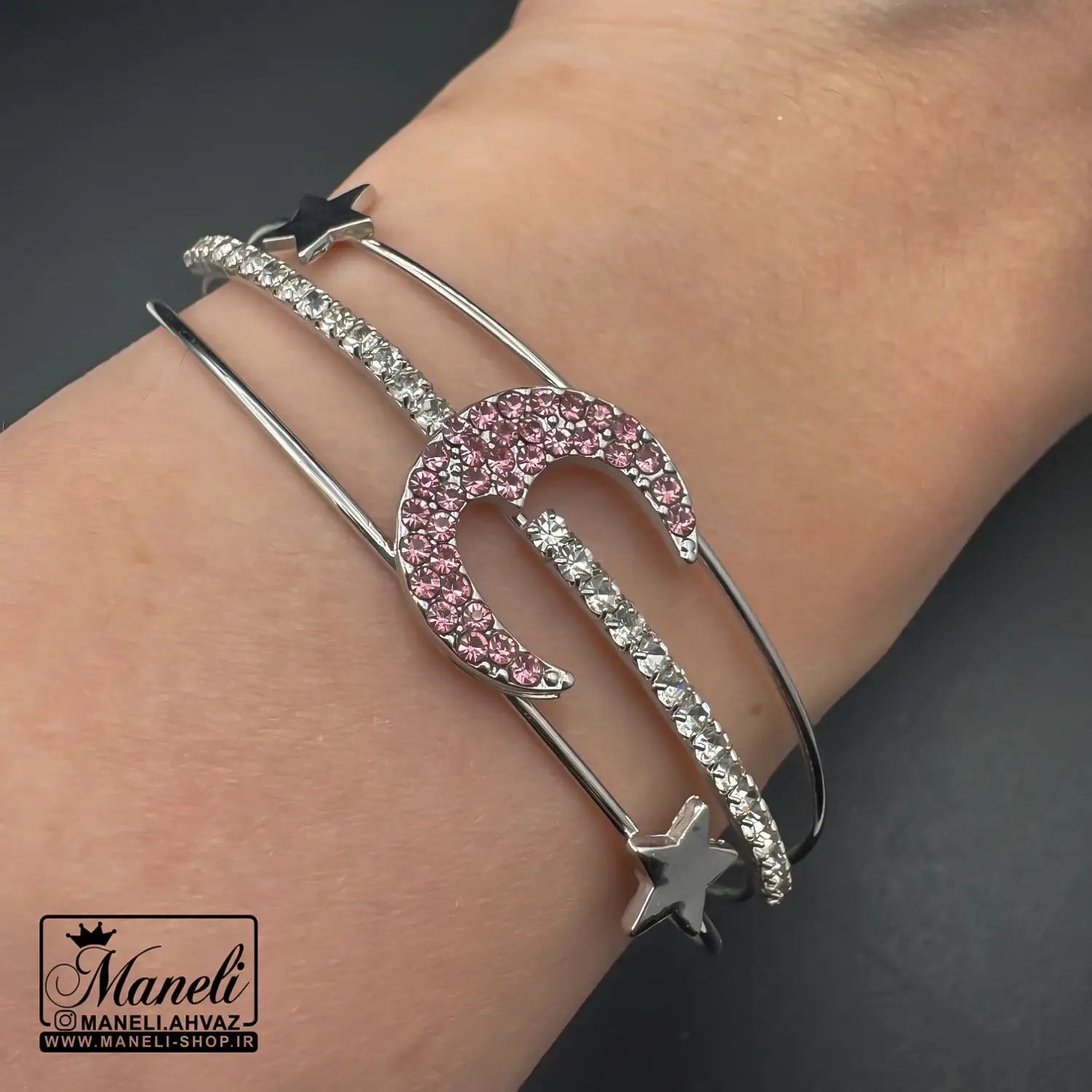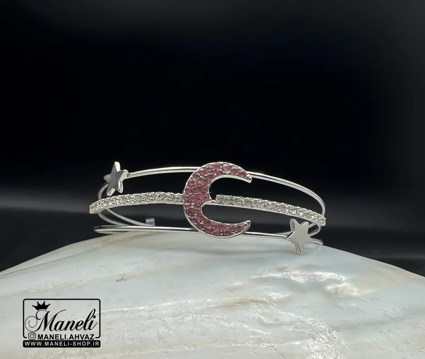 دستبند دخترانه سیلور نگین باگتی ماه و ستاره