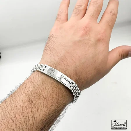 دستبند رولکس مردانه نقره ای پلاک دار