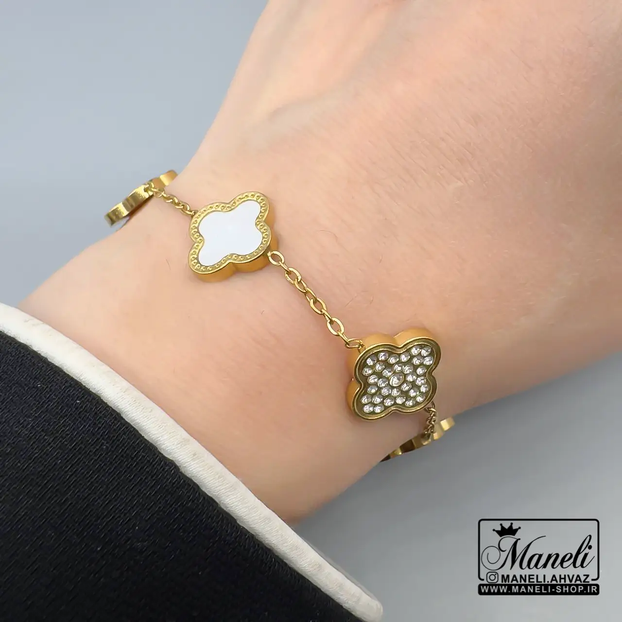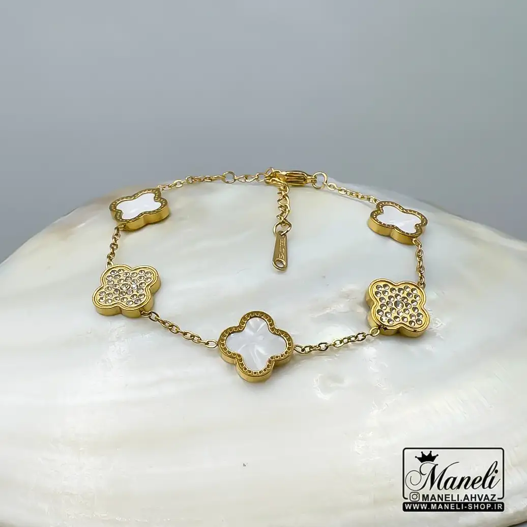 دستبند زنانه ونکلیف طلایی و سفید |14040747