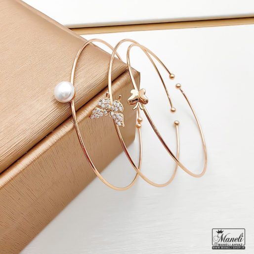 دستبند سه تایی مینیمال ژوپینگ | پروانه و مروارید | بنگل ظریف