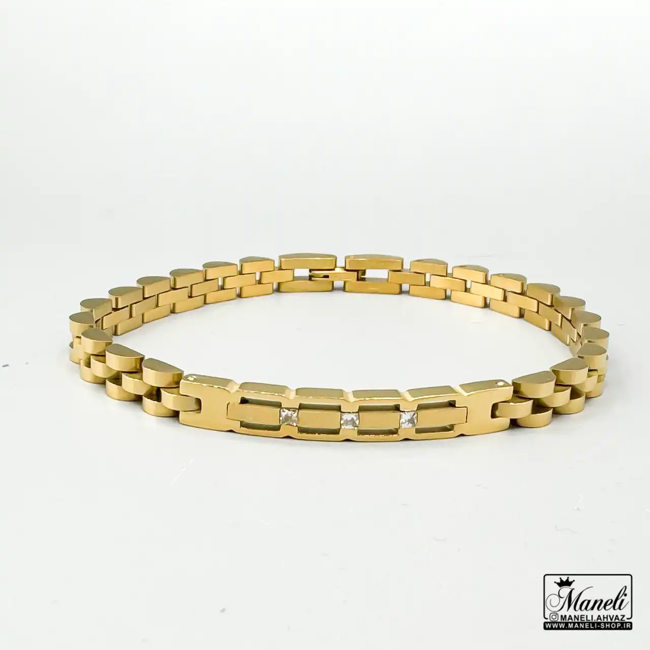 دستبند ظریف رولکس پلاک دار طلایی 6 میل | استیل 14040828