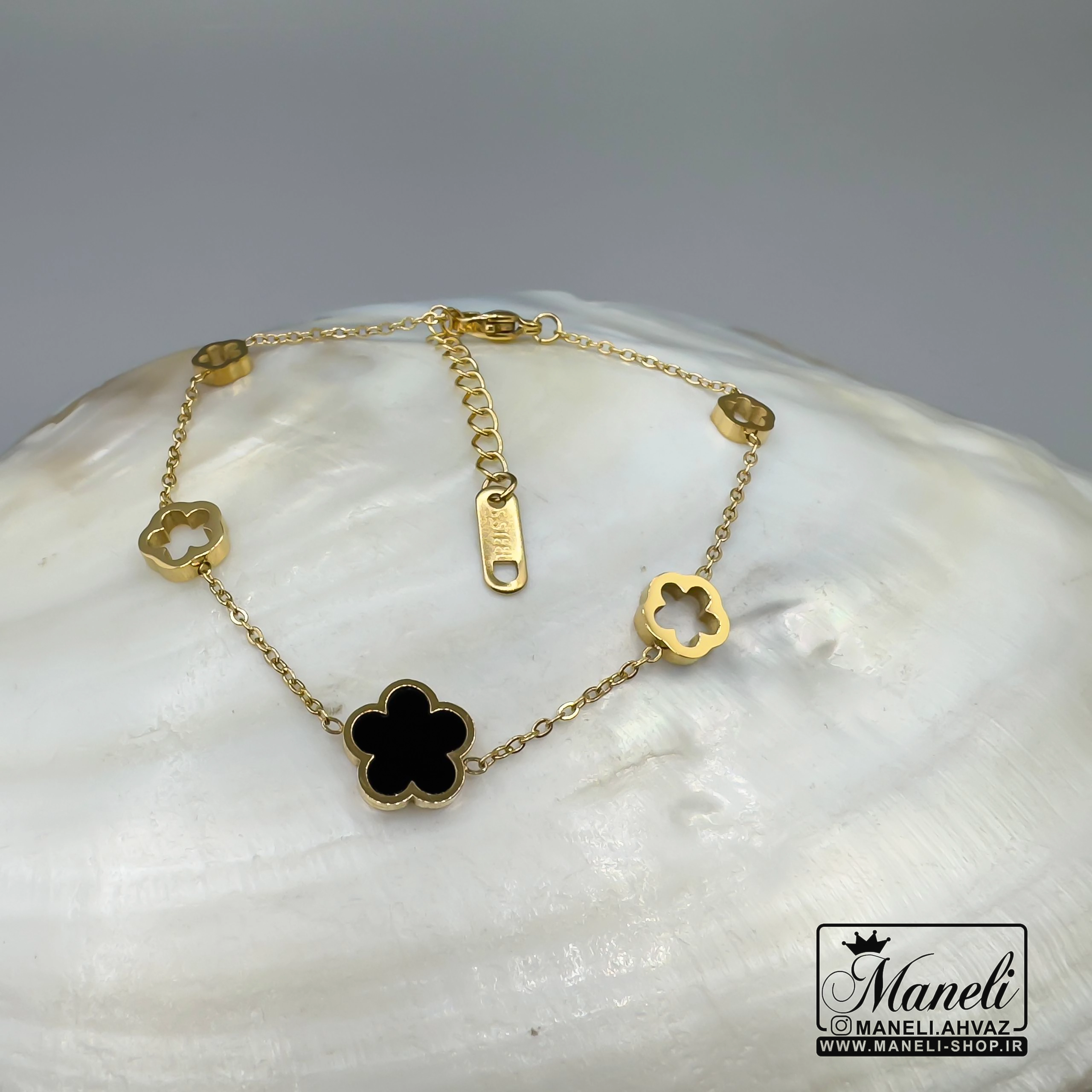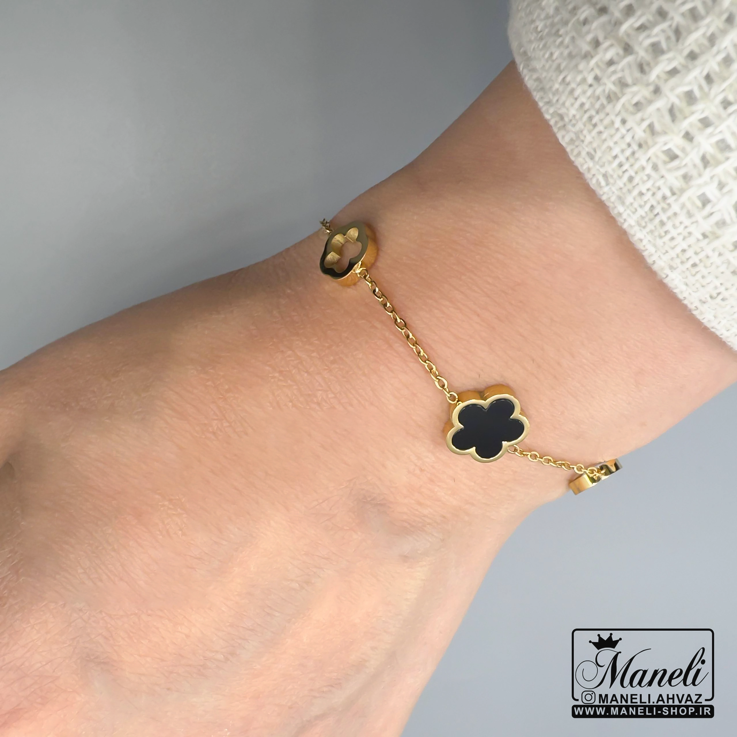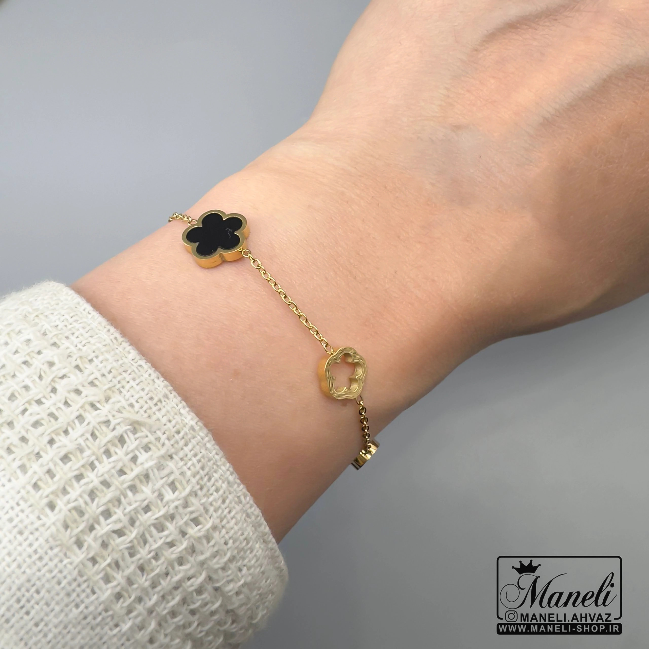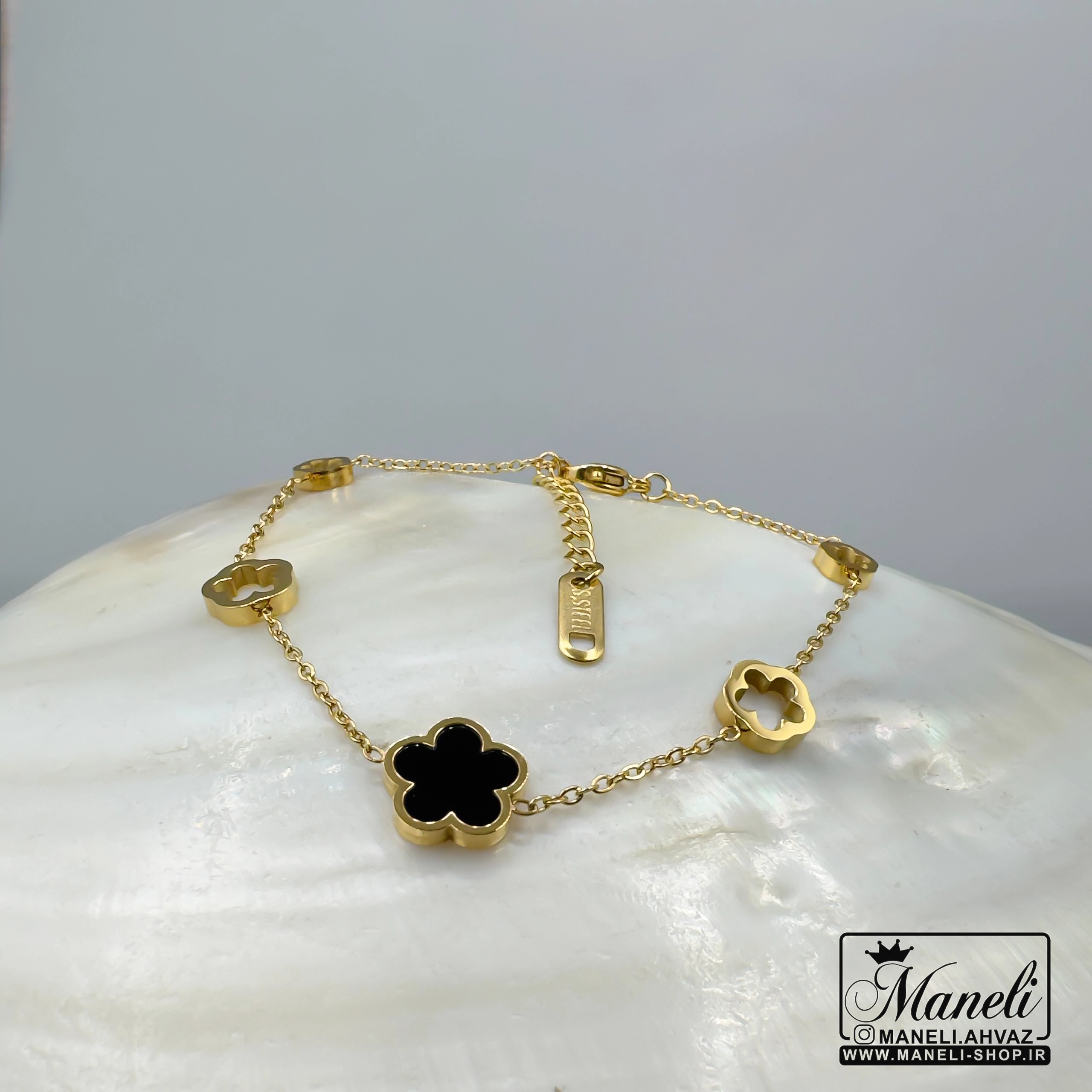 دستبند ظریف طلایی طرح گل مشابه ونکلیف مینیمال