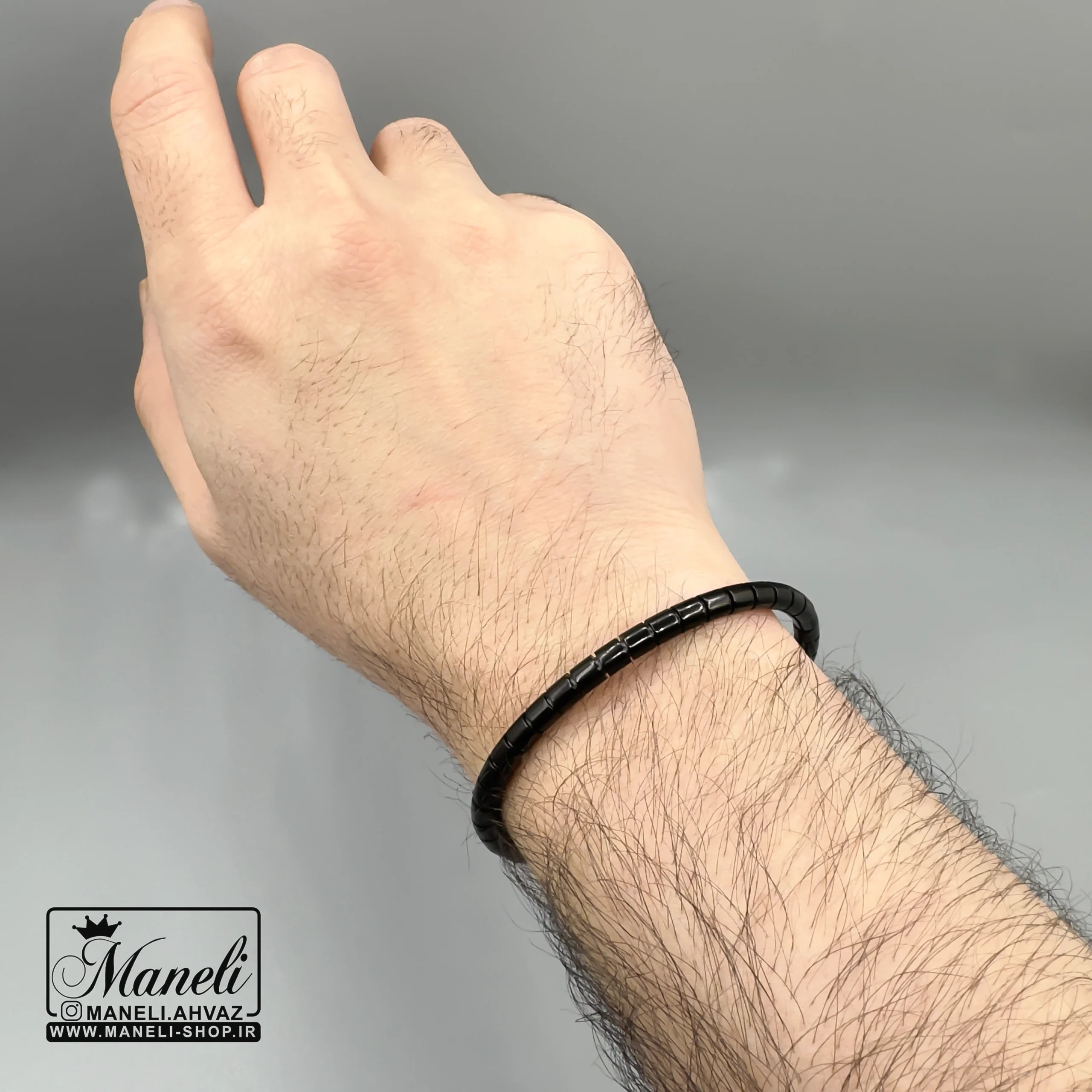 دستبند مردانه بنگل مردانه مشکی طرحدار مدل سیم تلفن