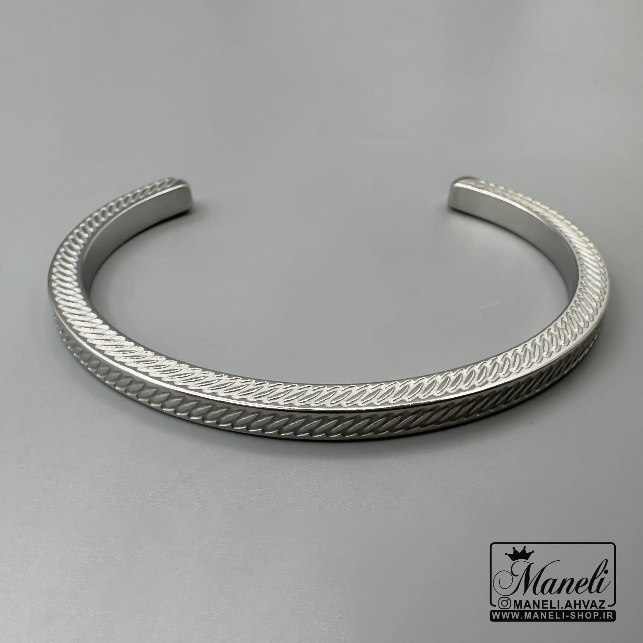دستبند مردانه بنگل مردانه نقره ای طرحدار|140406116