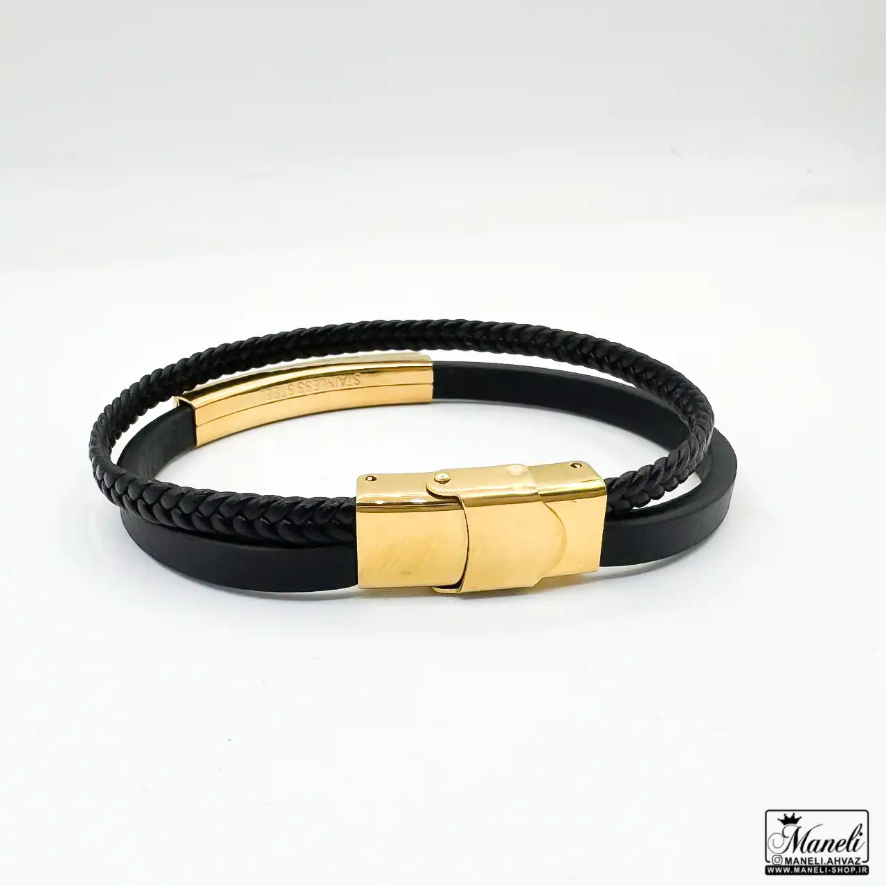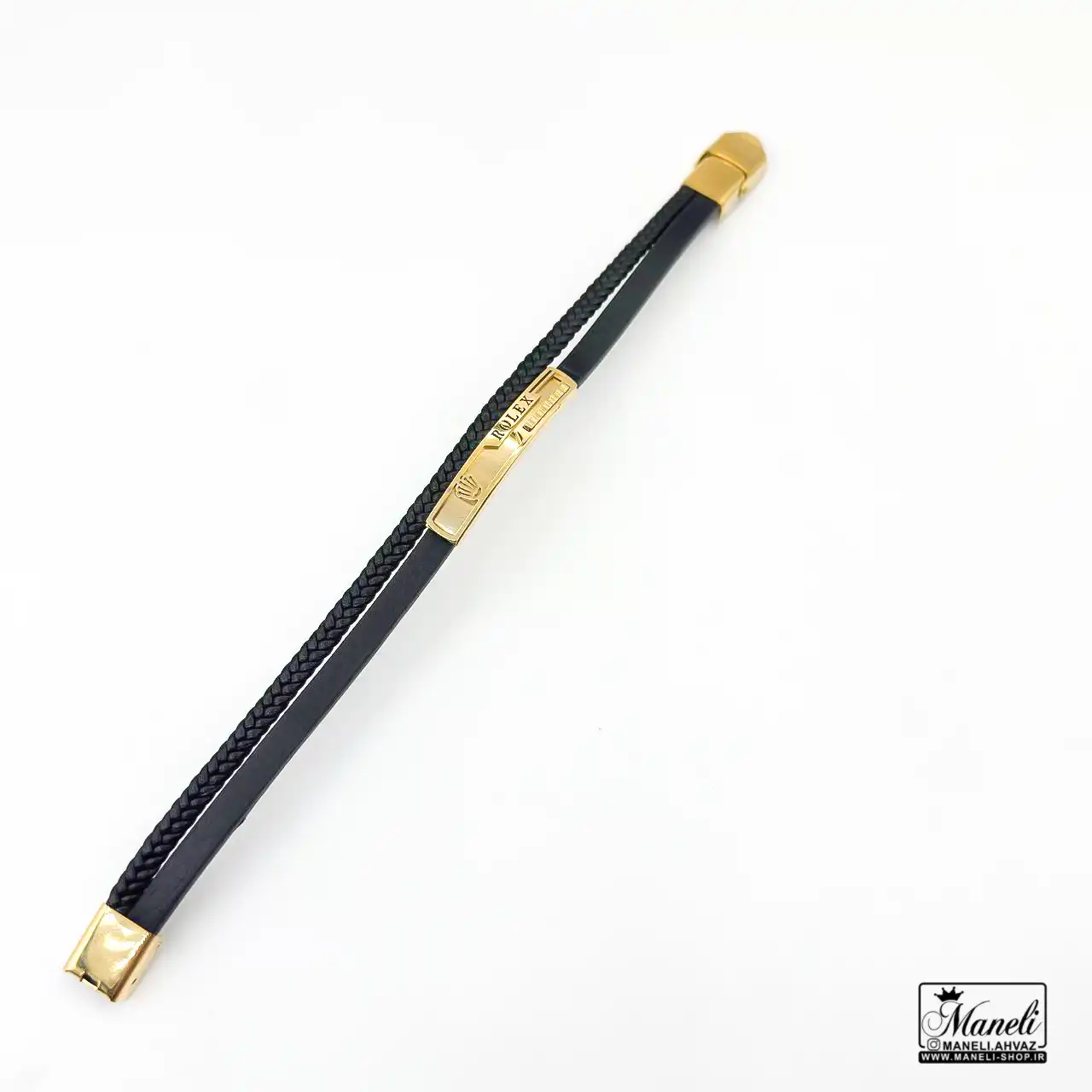 دستبند مردانه چرم با پلاک طلایی رولکس