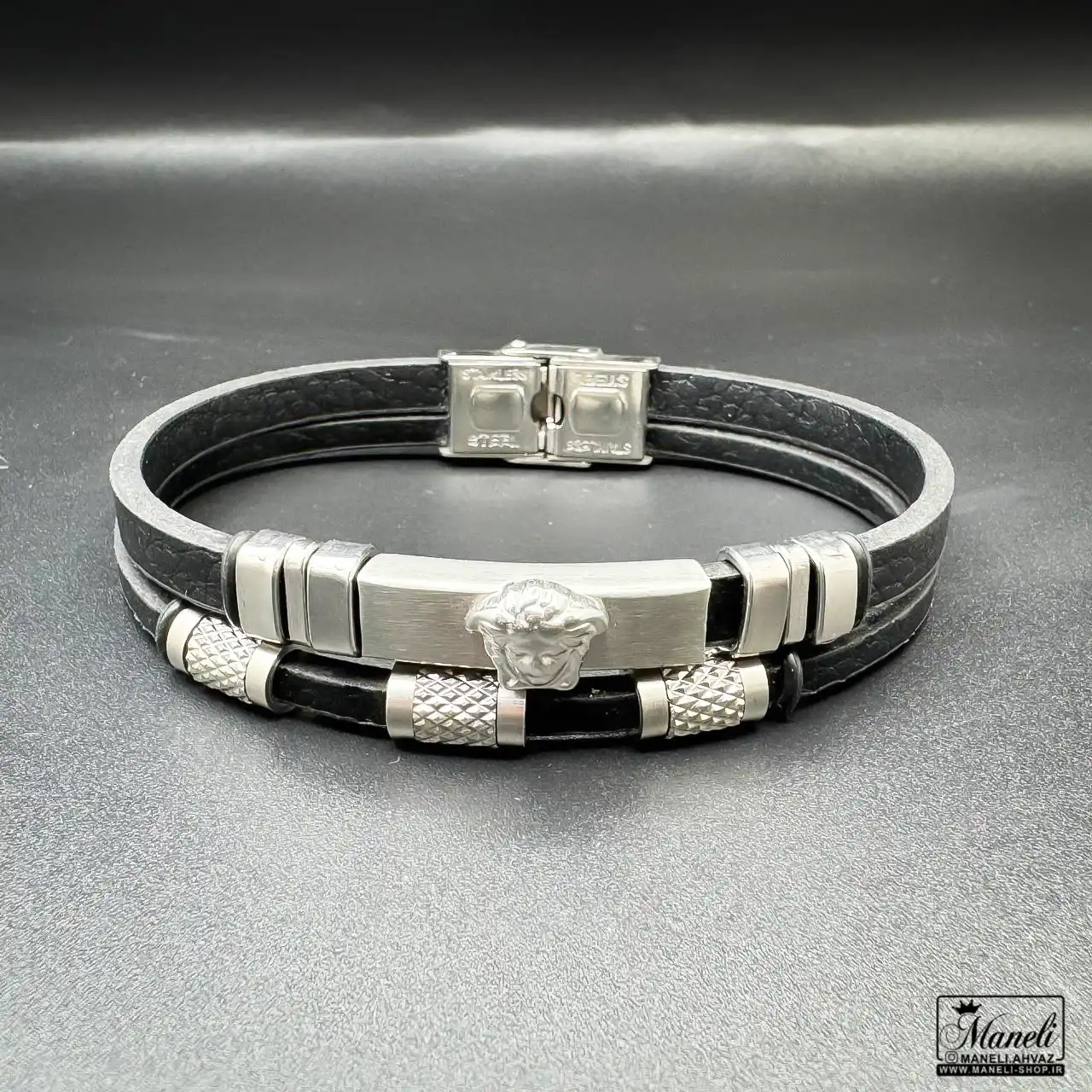 دستبند مردانه چرم با پلاک ورساچه؛ تلفیق قدرت و اصالت