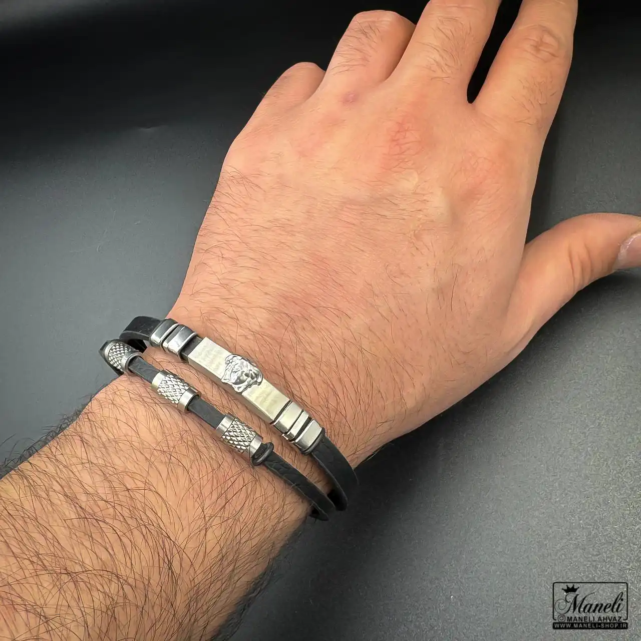 دستبند مردانه چرم با پلاک ورساچه سیلور