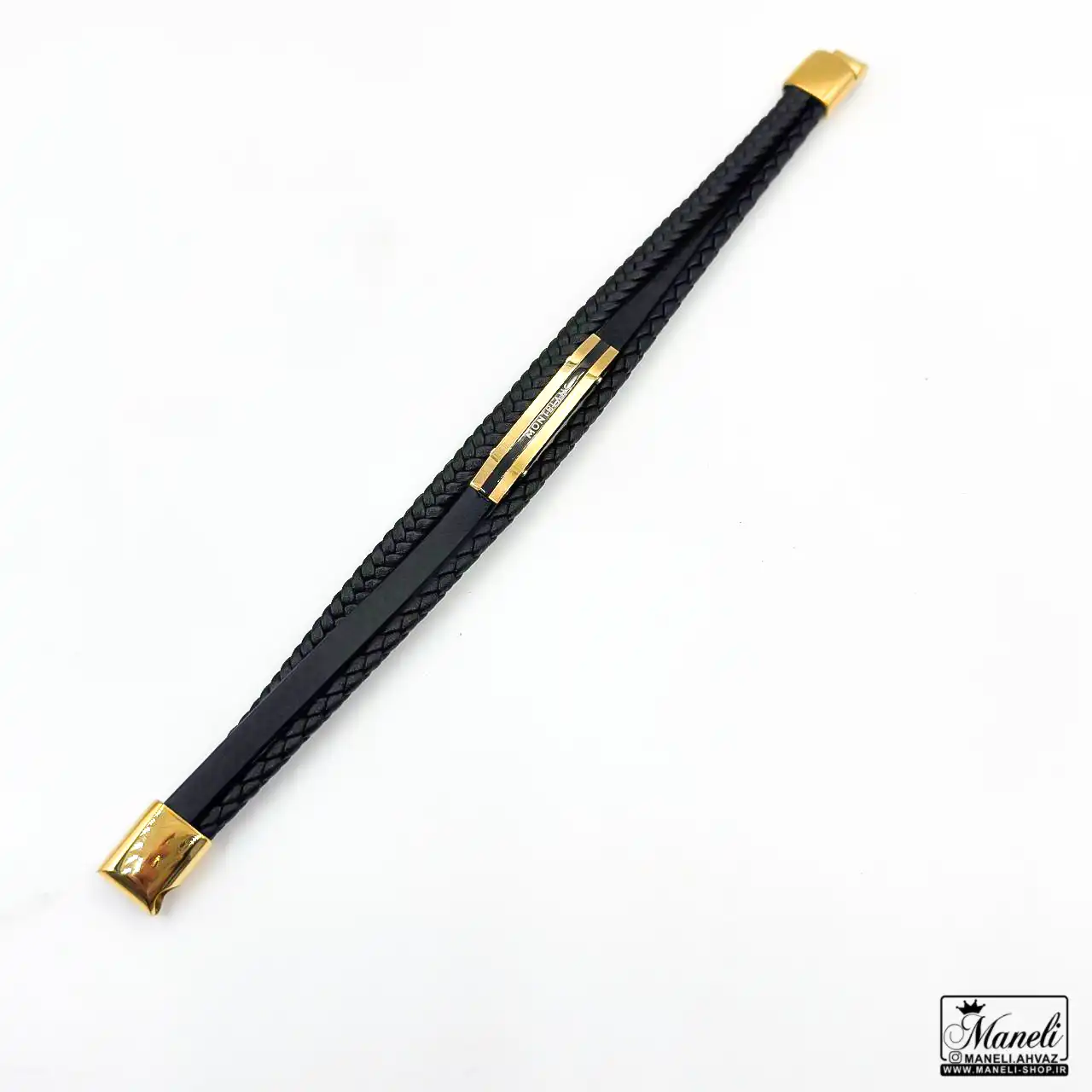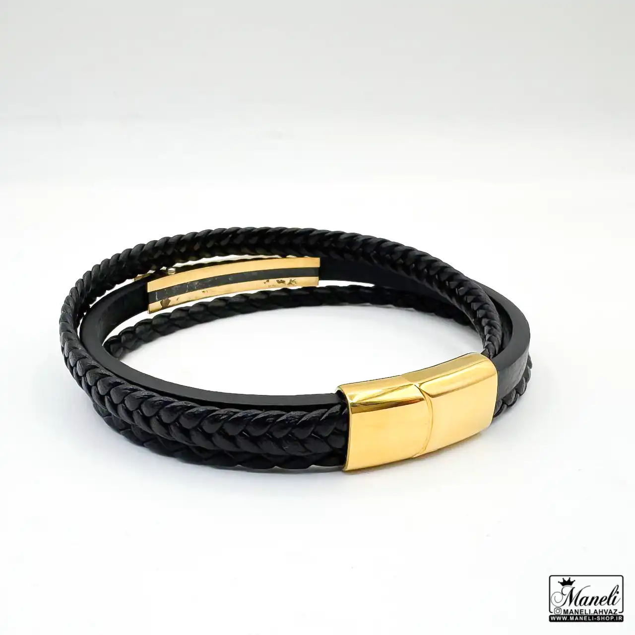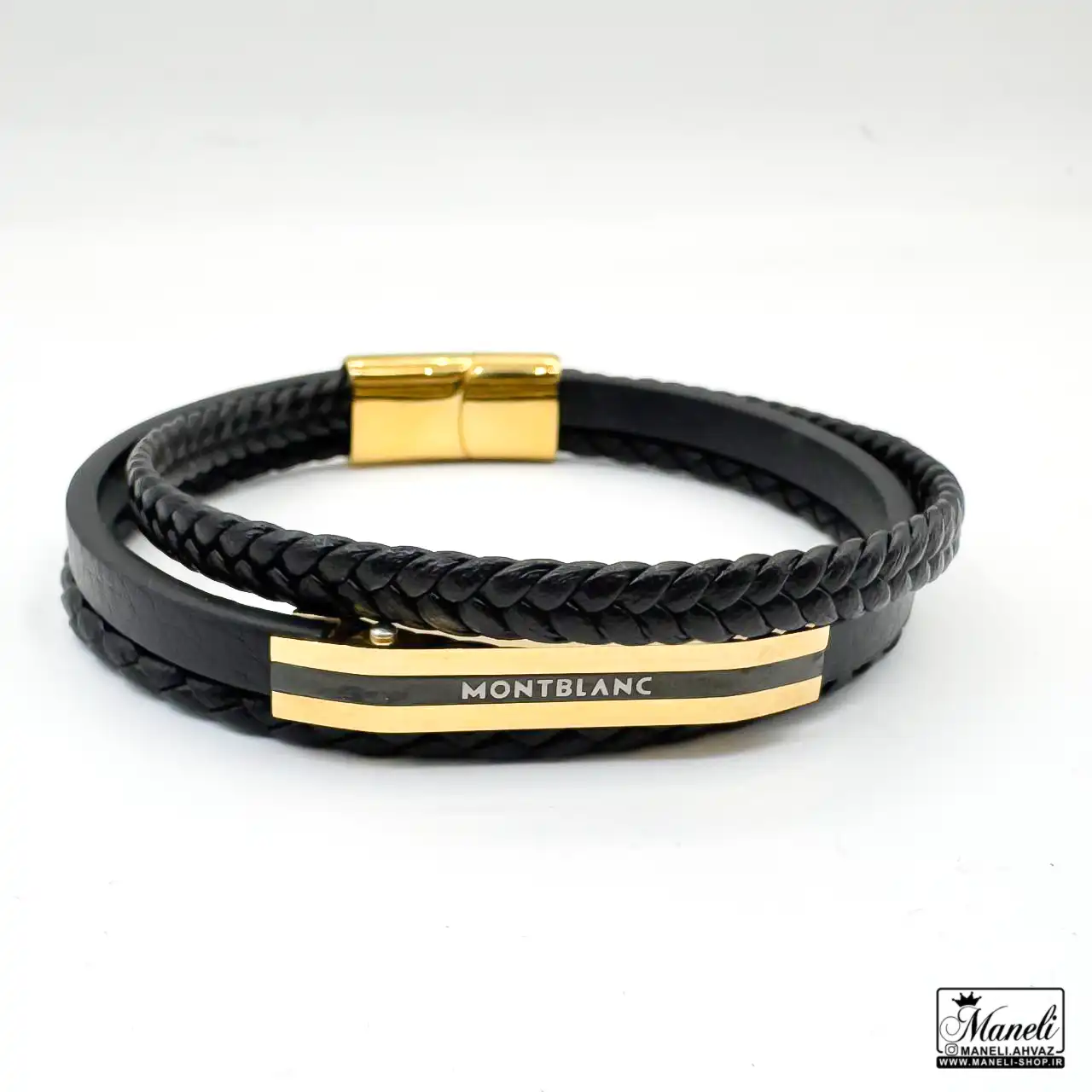 دستبند مردانه چرم سه دیفه با پلاک طلایی مونت بلانک: نمادی از اصالت و سلیقه