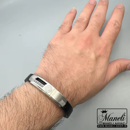 دستبند چرم و استیل مردانه ورساچه|14040557