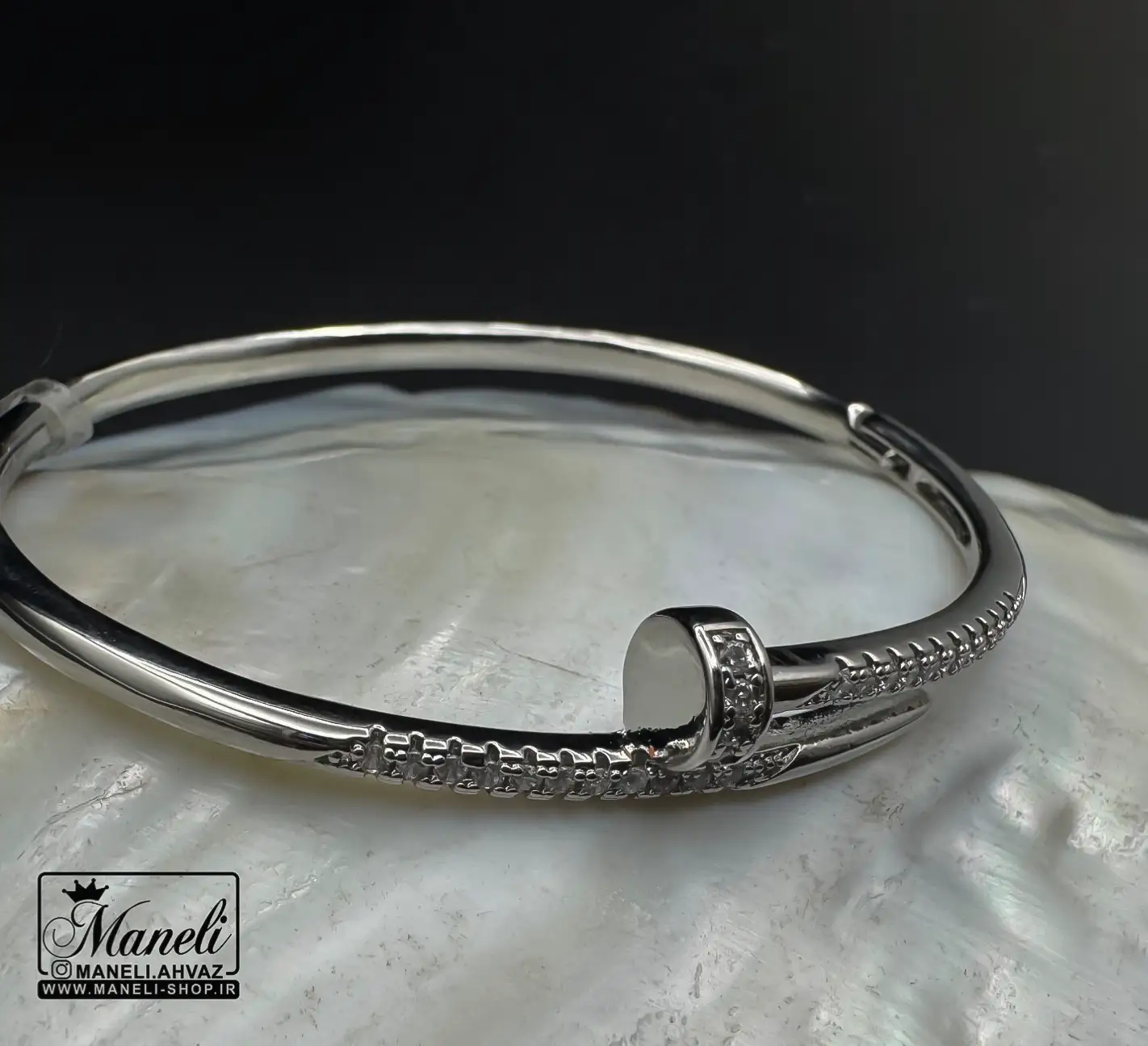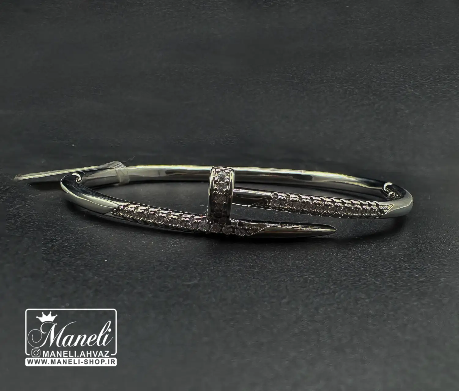 دستبند میخی نقره ای با نگین مخراج شده