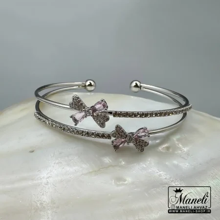 دستبند نقره ای زنانه رنگ ثابت نگین صورتی |14040899