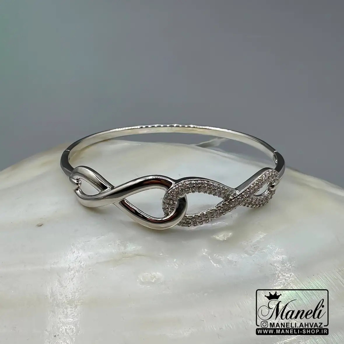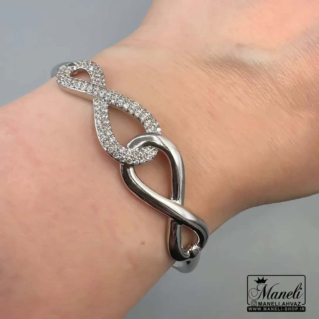 دستبند نقره ای زنانه نگین مخراج شده مدل بی نهایت|140408108