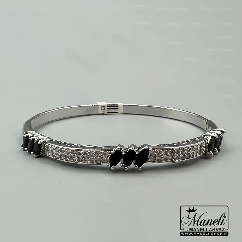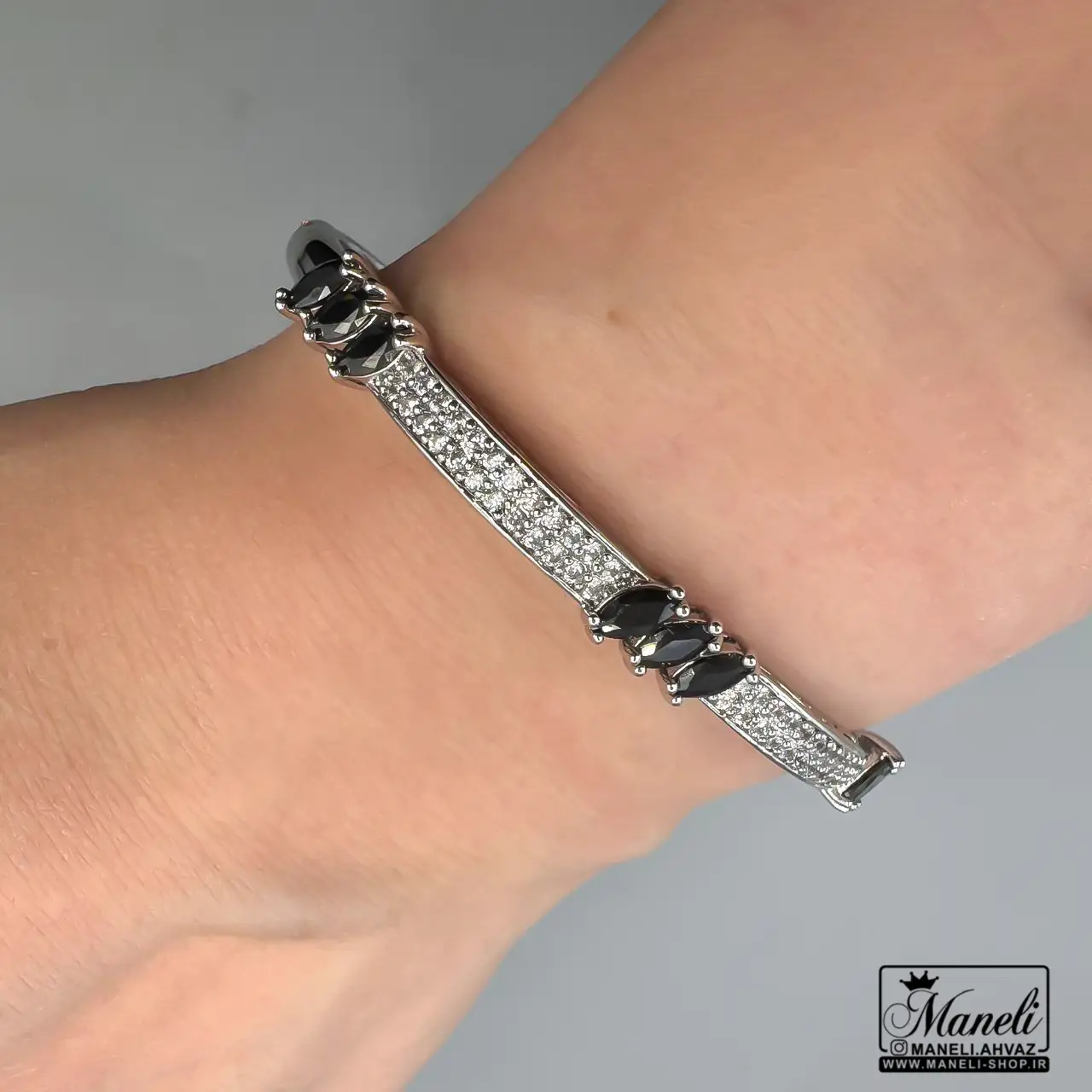 دستبند نقره ای زنانه نگین مشکی و سفید مخراج شده |140408112