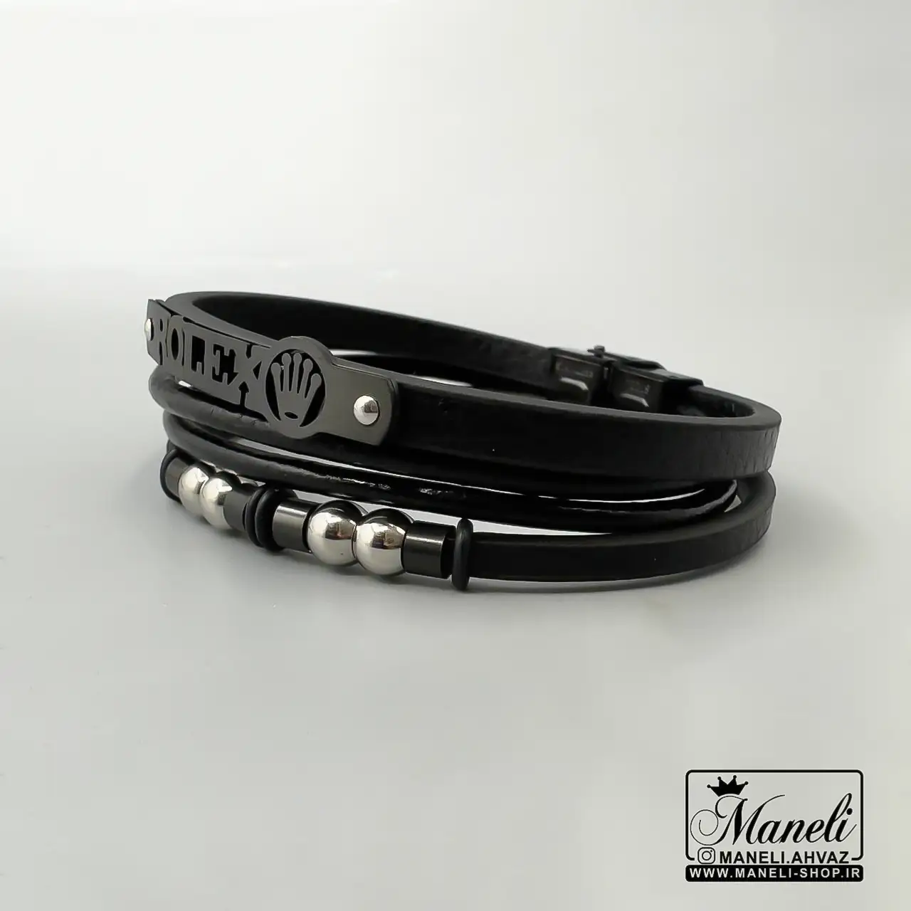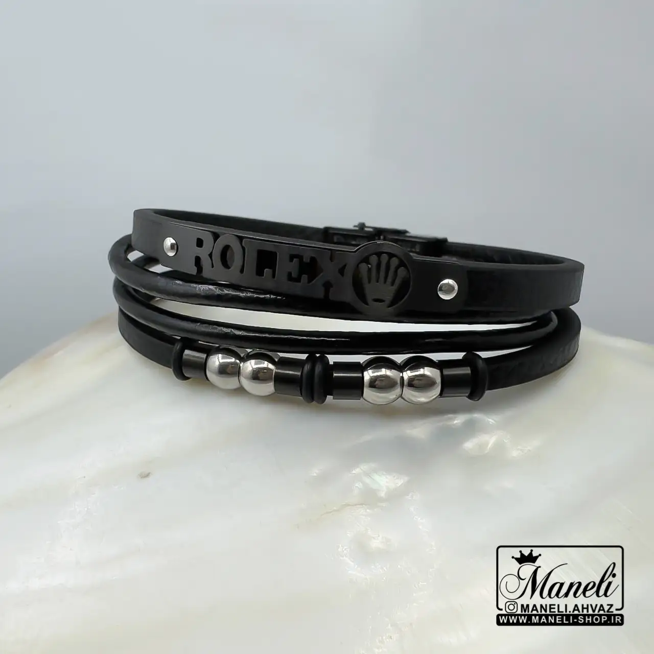 دستبند چرم رولکس مشکی و سیلور: همراهی شیک برای مردان خوشاستایل