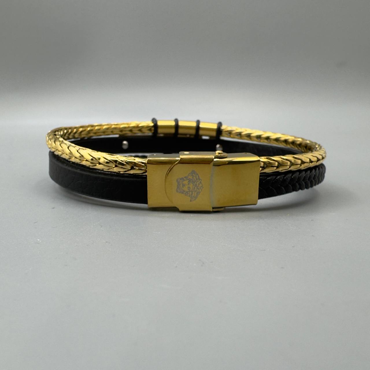 دستبند چرم رولکس مشکی و طلایی: همراهی شیک برای مردان خوشاستایل
