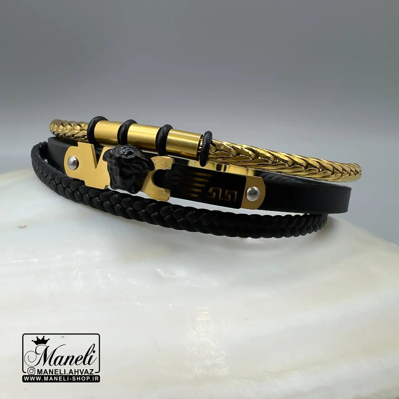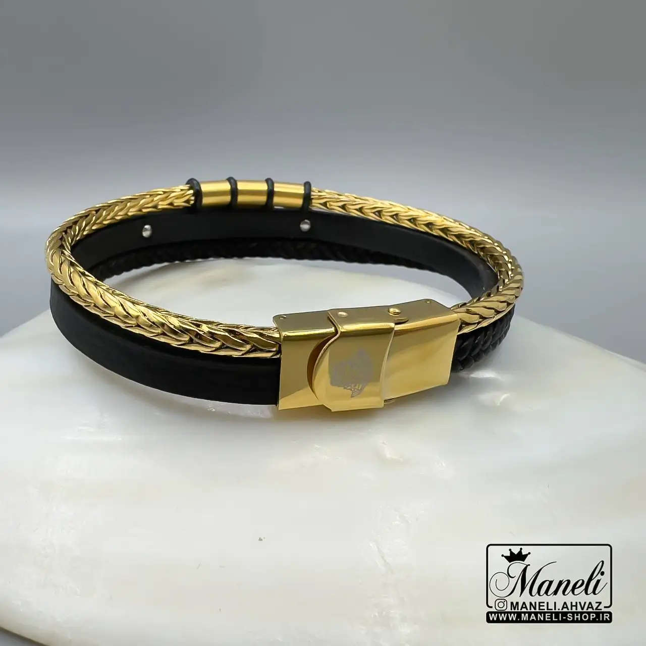 - ترکیب بینظیر چرم مشکی و استیل طلایی: جلوهای لوکس و جذاب که هر چشمی را به خود جلب میکند.