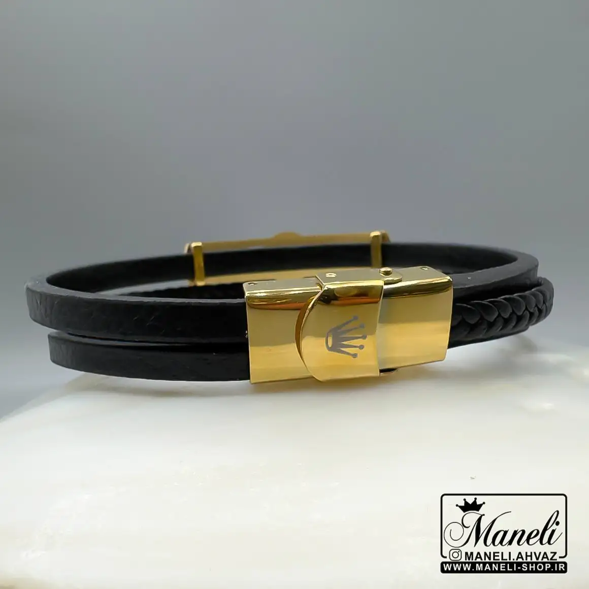 دستبند چرم رولکس مشکی و طلایی|14040774