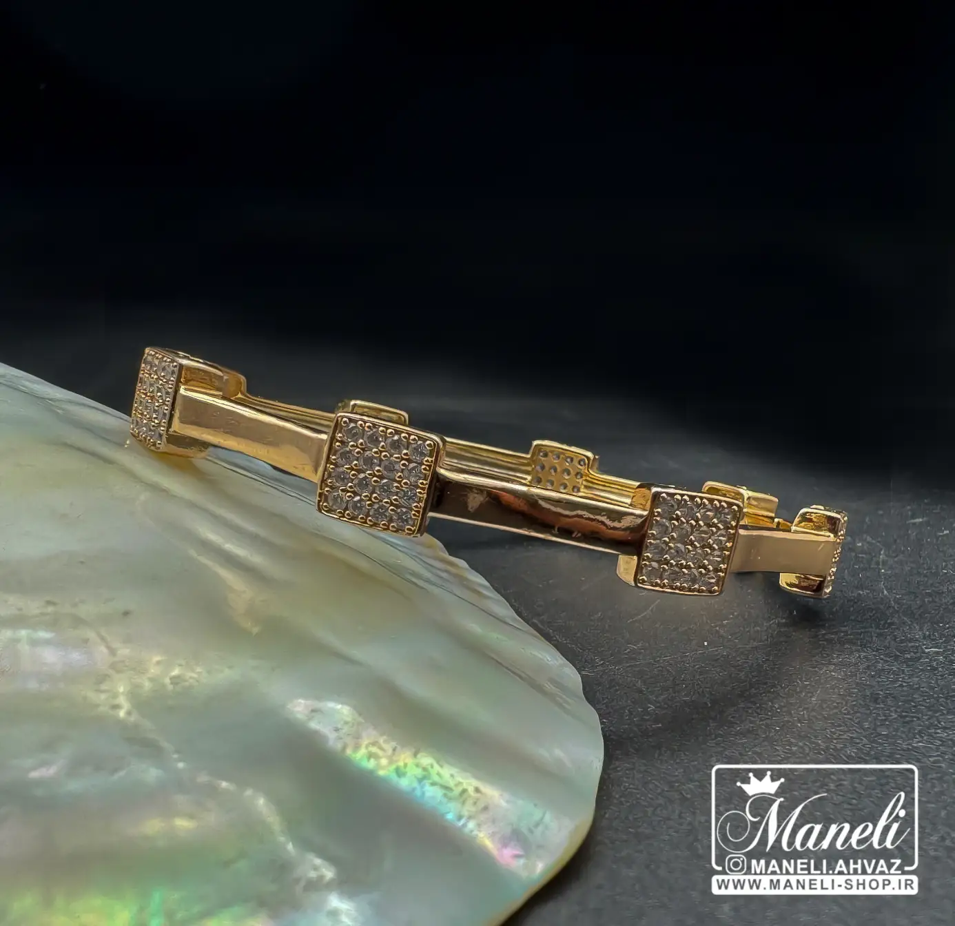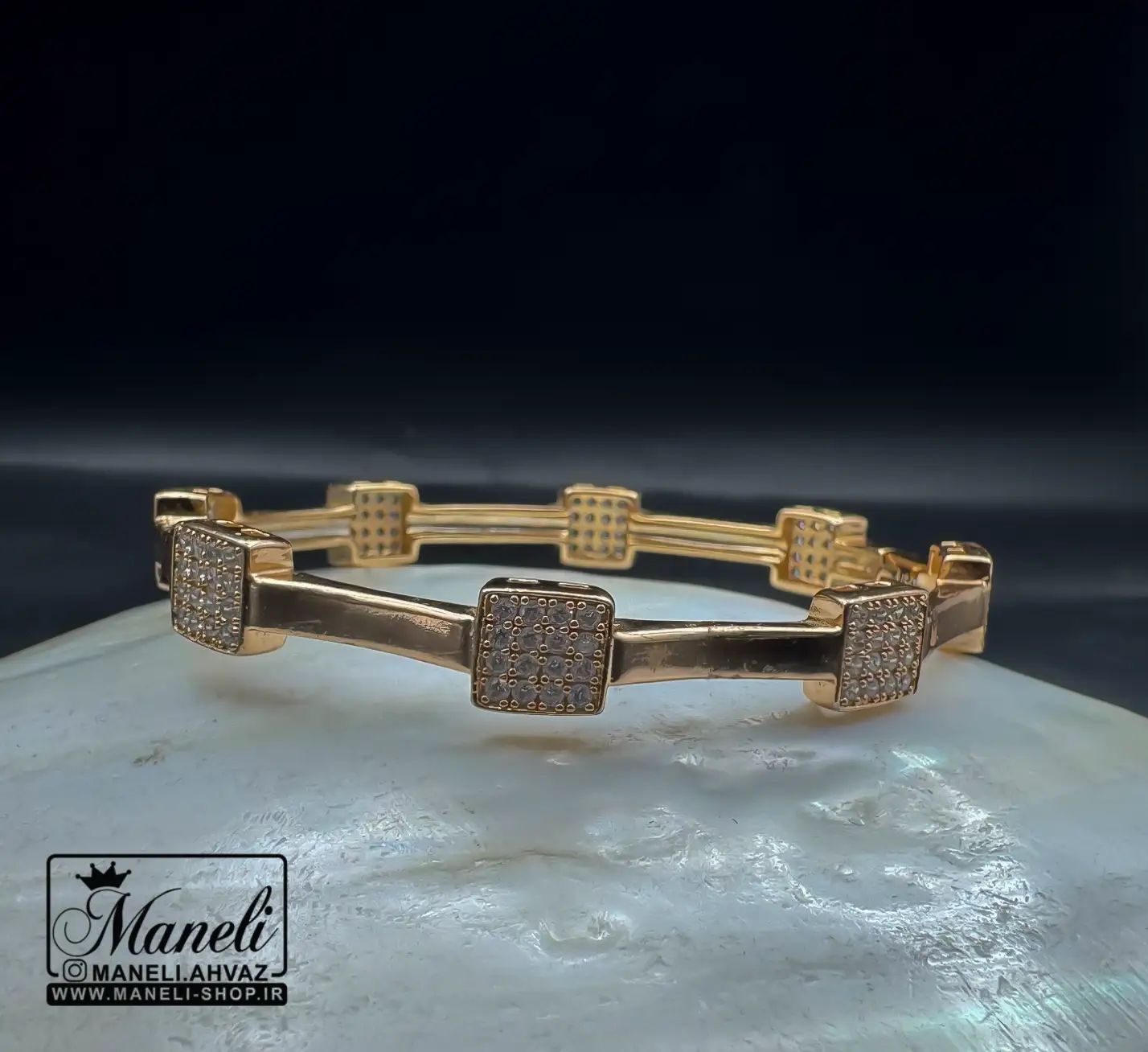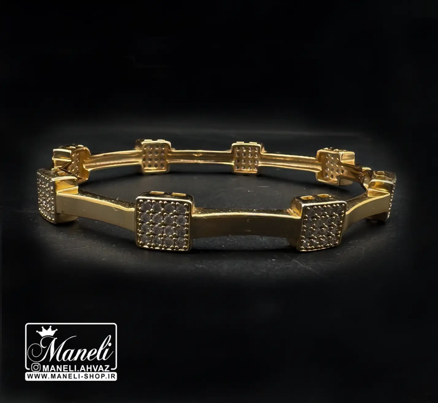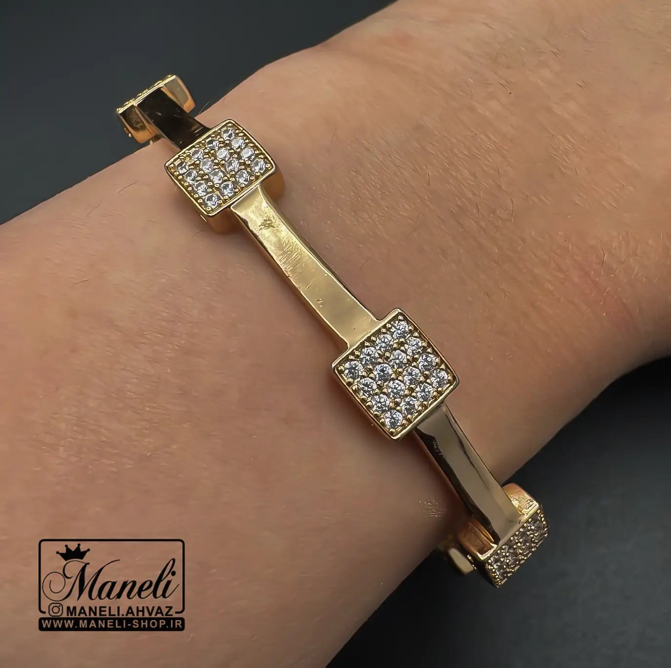 دستبند ژوپینگ طرح مربعی زنانه نگین دار مخراج شده