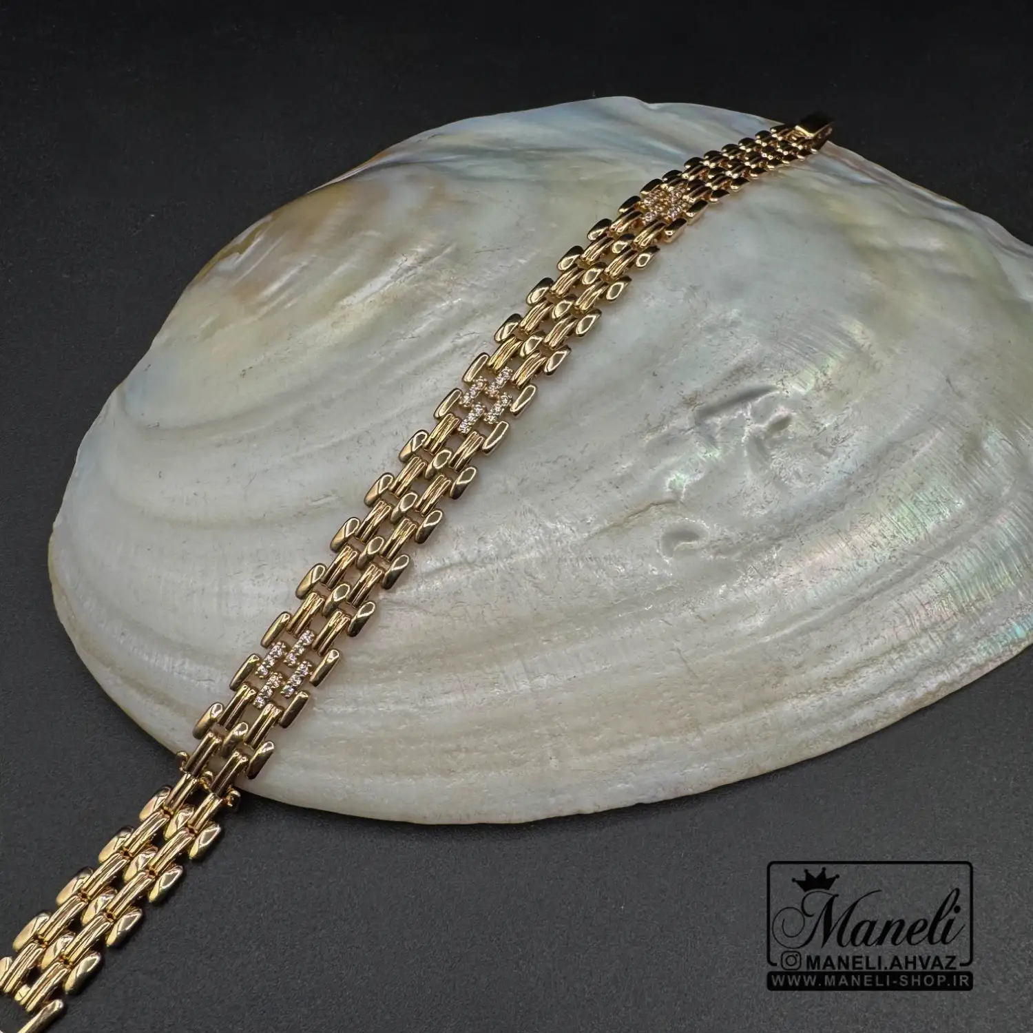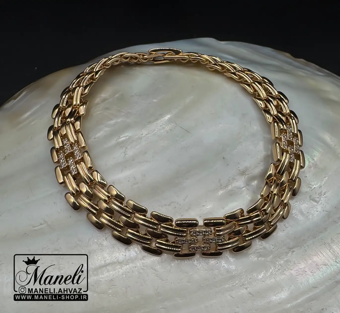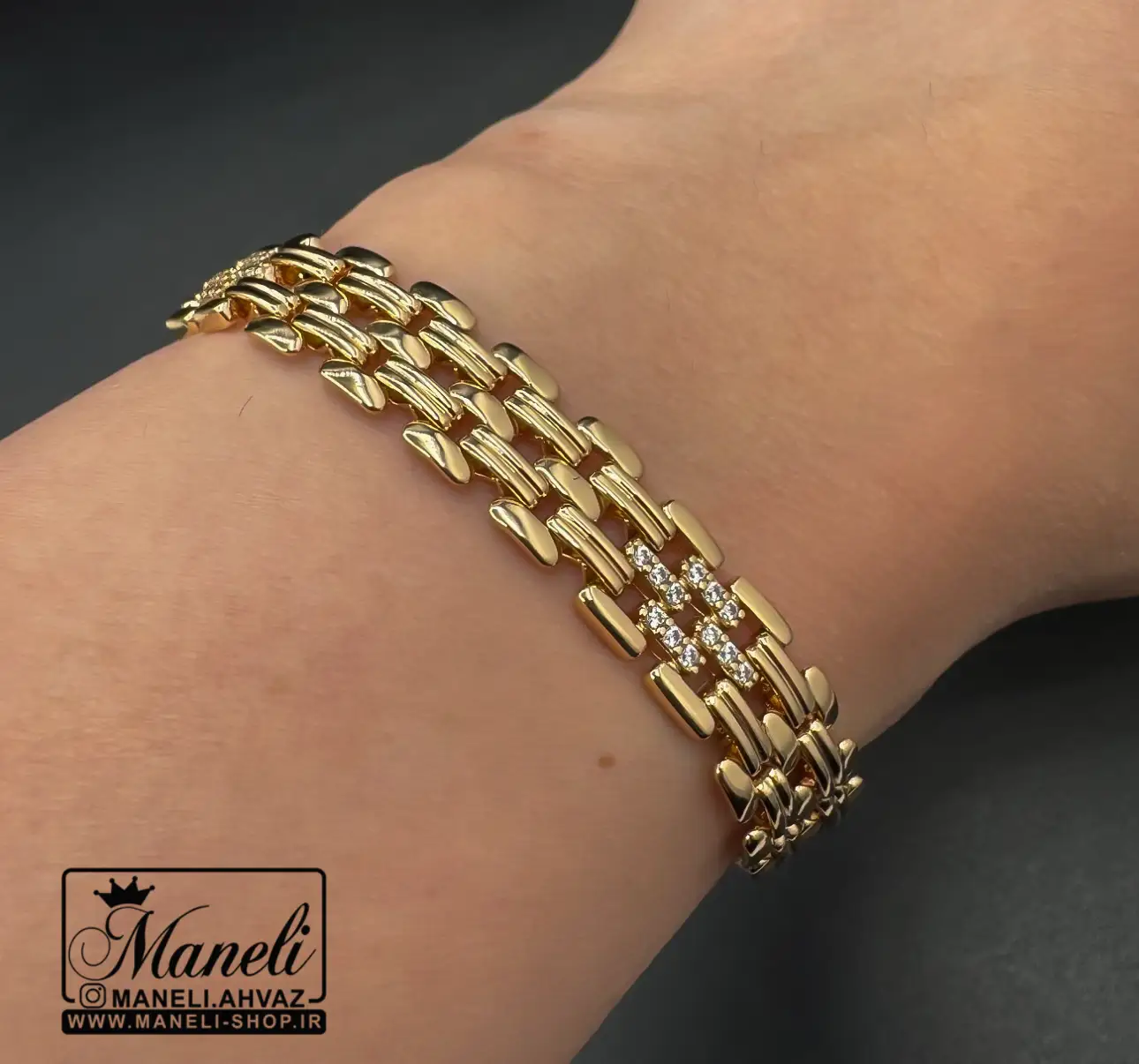 دستبند ژوپینگ نگین مخراج شده مشابه طلا