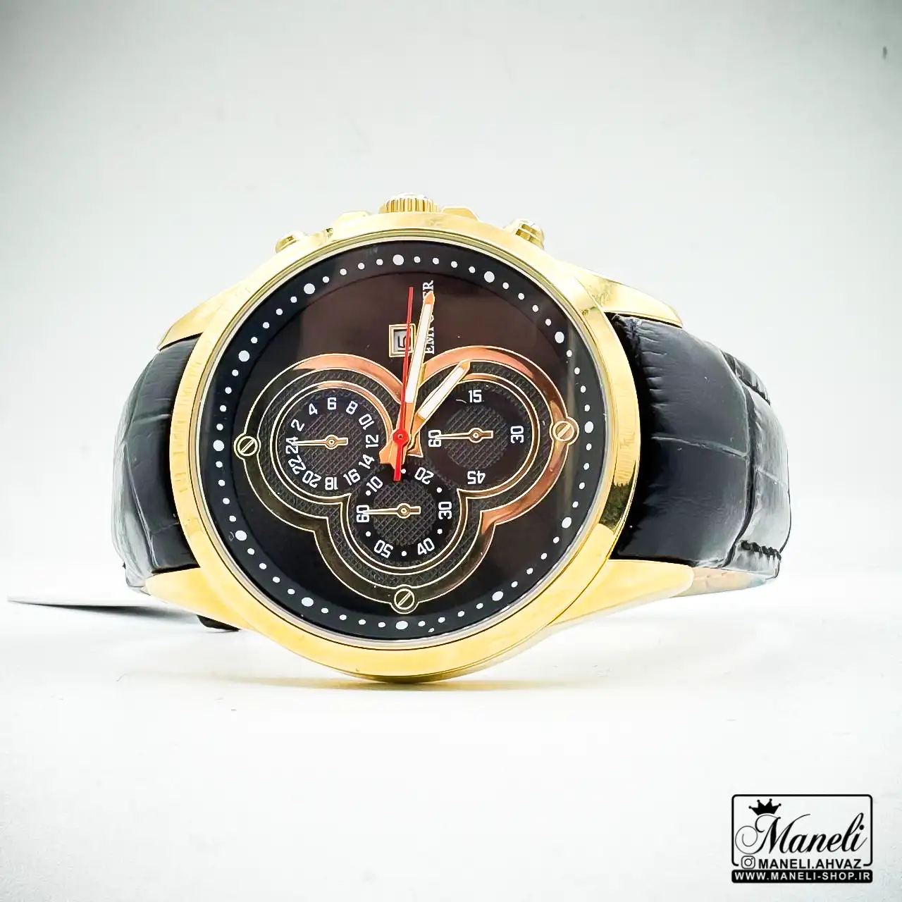 بند چرم مشکی مرغوب آن، نه تنها لمسی لطیف و راحت بر روی مچ دست شما ایجاد میکند، بلکه با دوام بالای خود، همراهی مطمئن برای سالیان متمادی خواهد بود. چرم طبیعی، با گذشت زمان، زیبایی و شخصیت بیشتری پیدا میکند و این ساعت را به بخشی جداییناپذیر از سبک شخصی شما تبدیل میکند. قفل پروانهای، علاوه بر سهولت در استفاده و قابلیت تنظیم دقیق، امنیت ساعت را تضمین کرده و از باز شدن ناگهانی آن جلوگیری میکند؛ ویژگیای که در ساعتهای لوکس یافت میشود.