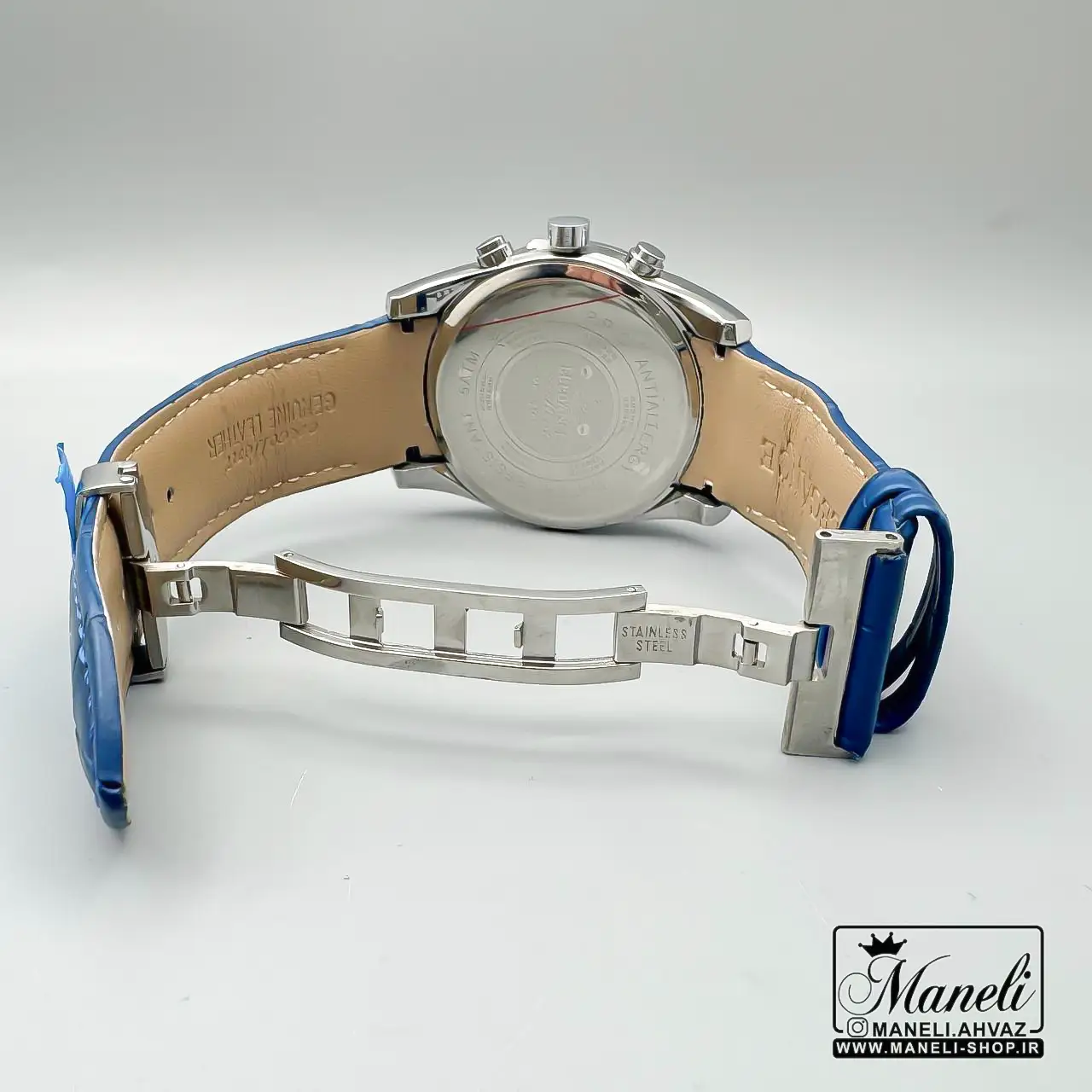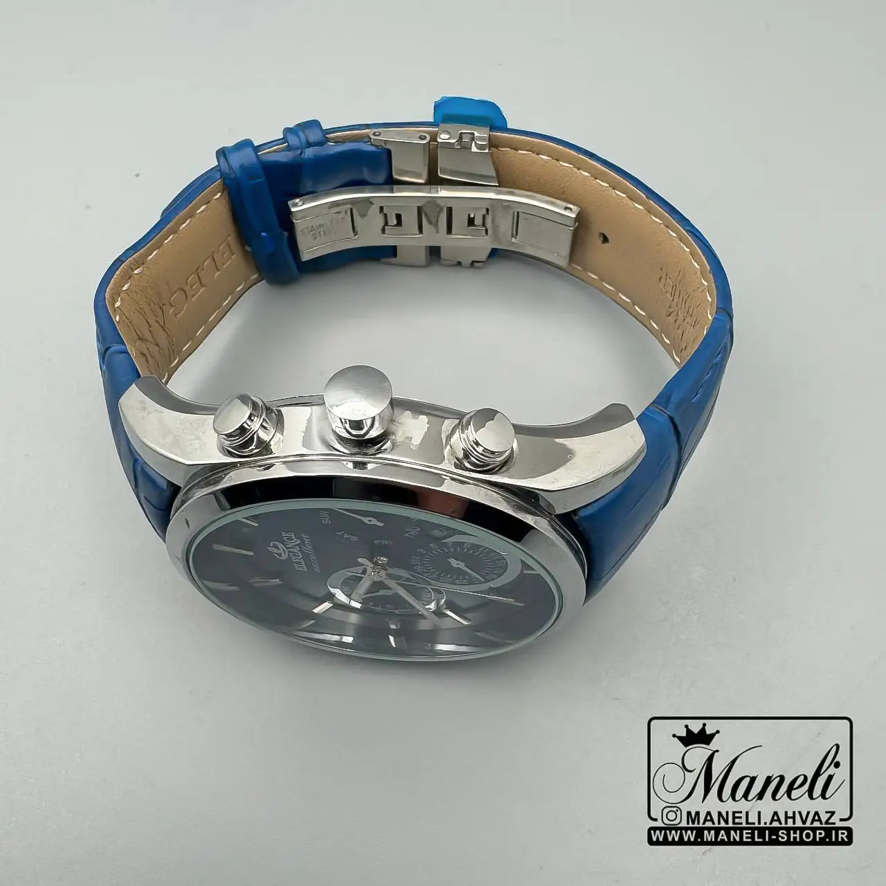 ساعت بند چرم مردانه الگانس آبی با قاب نقره ای|14040597