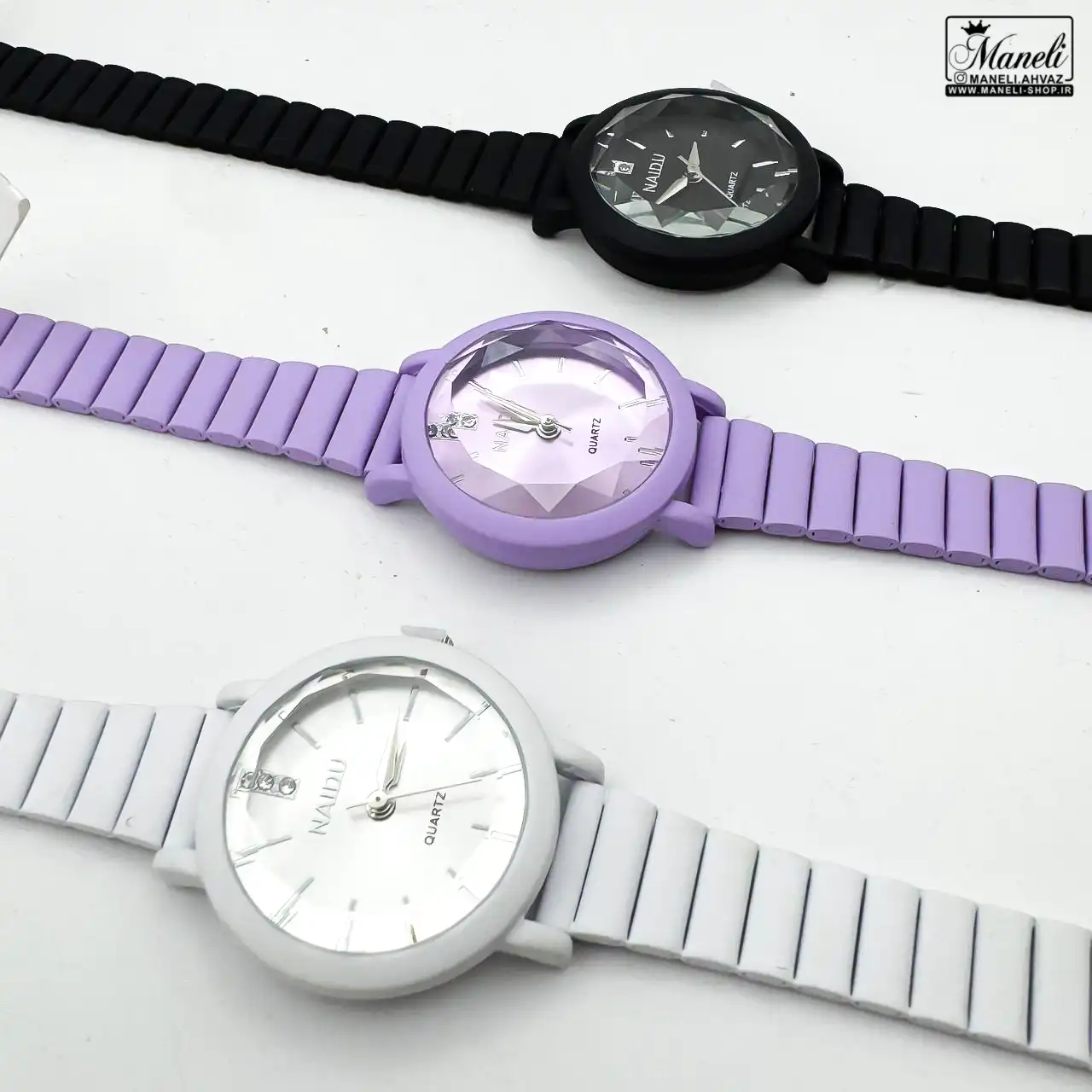 ساعت دخترانه رنگی naidu – سفید | مشکی | بنفش