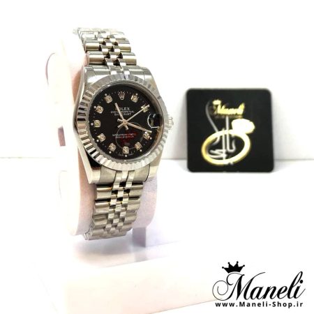 ساعت رولکس نقره ای صفحه مشکی زنانه rolex