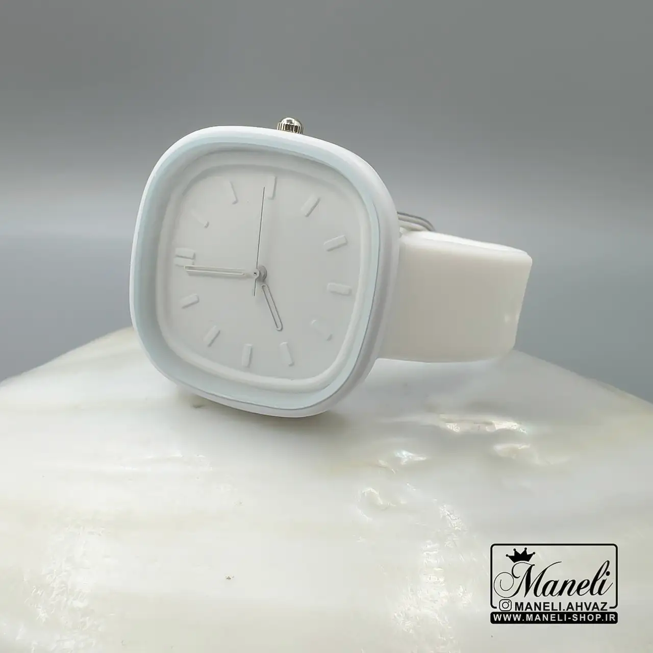 - طراحی شیک و مینیمال: رنگ سفید خیرهکننده و ظریف این ساعت، به راحتی با هر استایلی هماهنگ میشود.