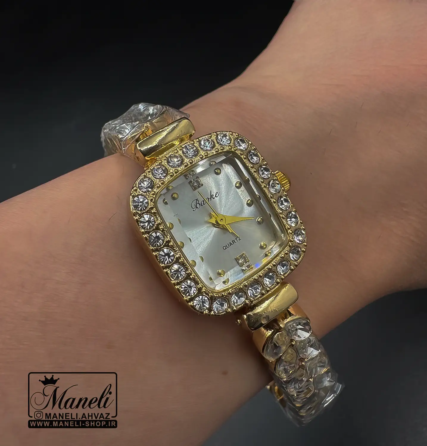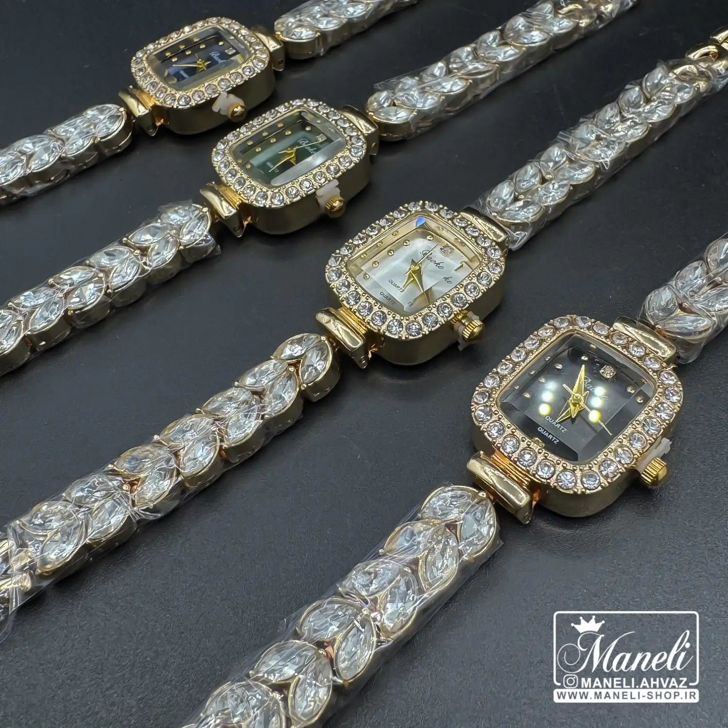 - نگینکاری زیبا: نگینهای درخشان که زیبایی ساعت را دوچندان میکند.