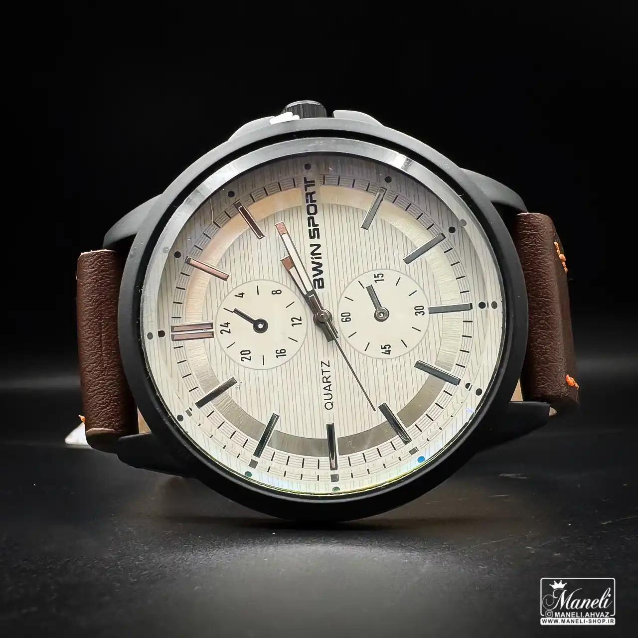 - بند چرم قهوهای باکیفیت: بند ساعت از چرم مرغوب با رنگ قهوهای گرم و دلنشین ساخته شده است. این بند نه تنها حس راحتی فوقالعادهای را به ارمغان میآورد، بلکه با بافت و رنگ طبیعی خود، جلوهای لوکس و کلاسیک به ساعت میبخشد که آن را برای ست شدن با انواع لباسهای اسپرت و کژوال، از جین و تیشرت گرفته تا پیراهنهای نیمهرسمی، بینظیر میکند.