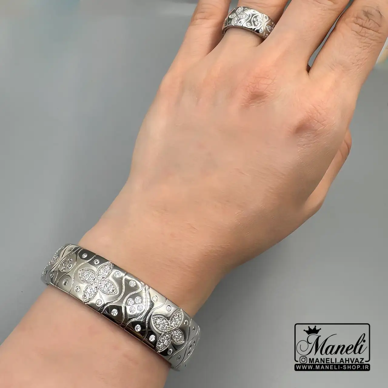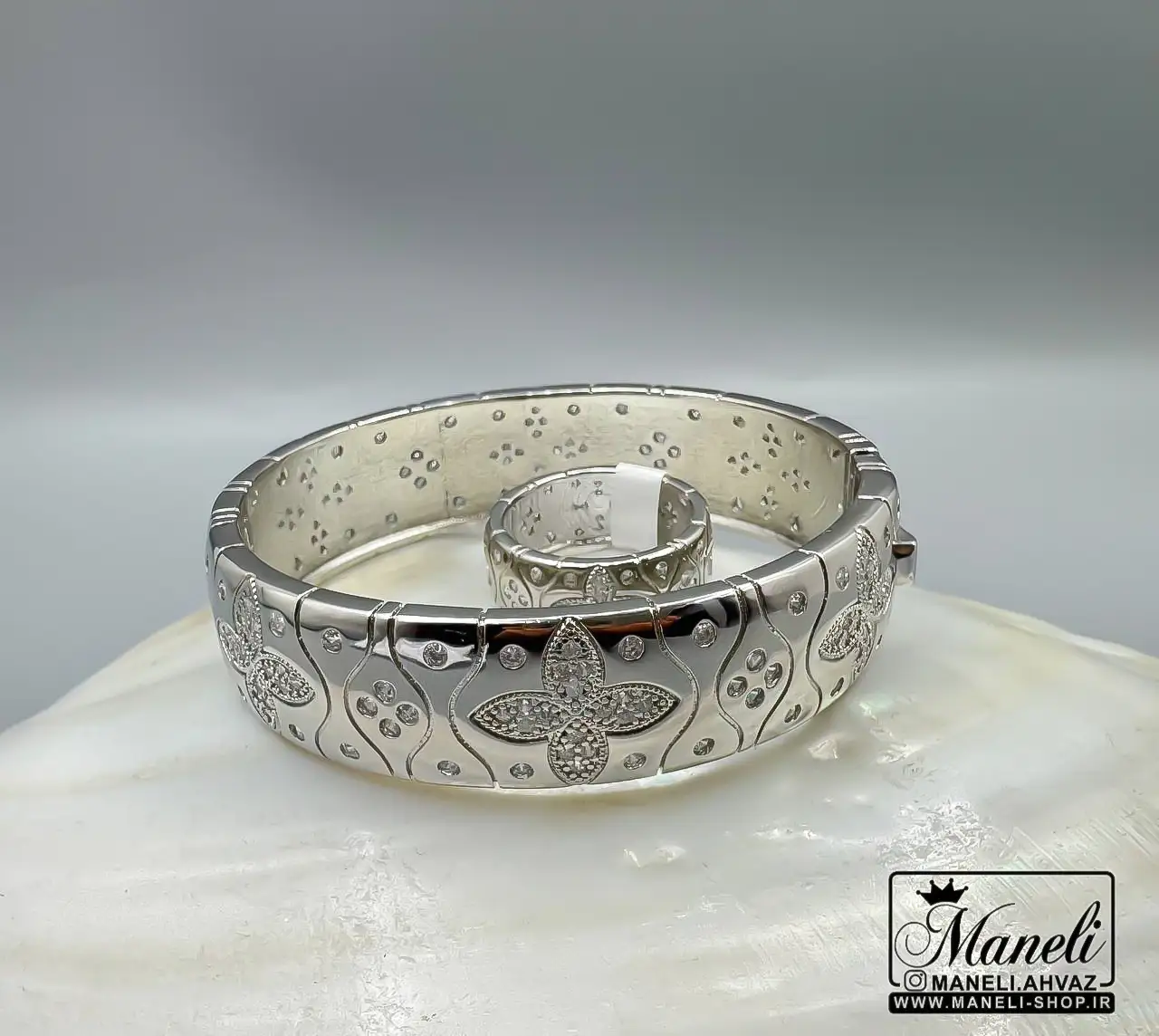 - هماهنگی بینظیر: این ست به گونهای طراحی شده که دستبند و انگشتر آن، مکمل یکدیگر بوده و هارمونی چشمنوازی را ایجاد میکنند، بدون اینکه نیاز به جستجوی زیورآلات مکمل داشته باشید.