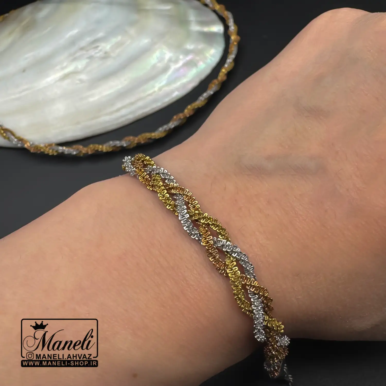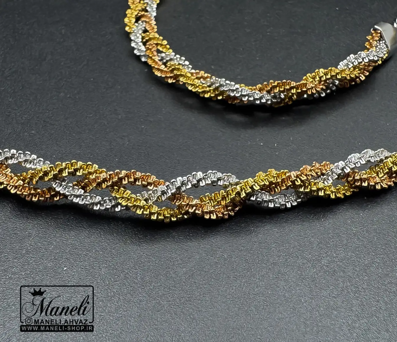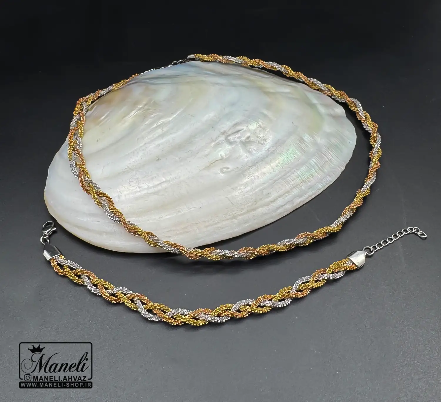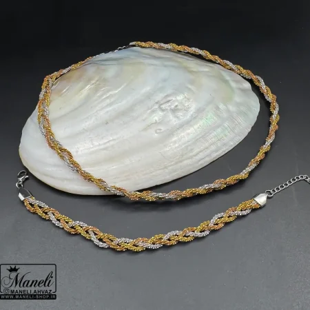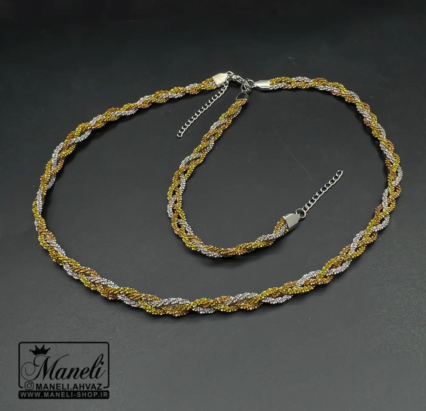 ست زنجیر و دستبند زنانه سه رنگ رنگ ثابت