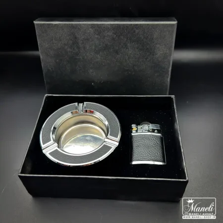 ست زیرسیگاری و فندک لاکچری مشکی با روکش چرم