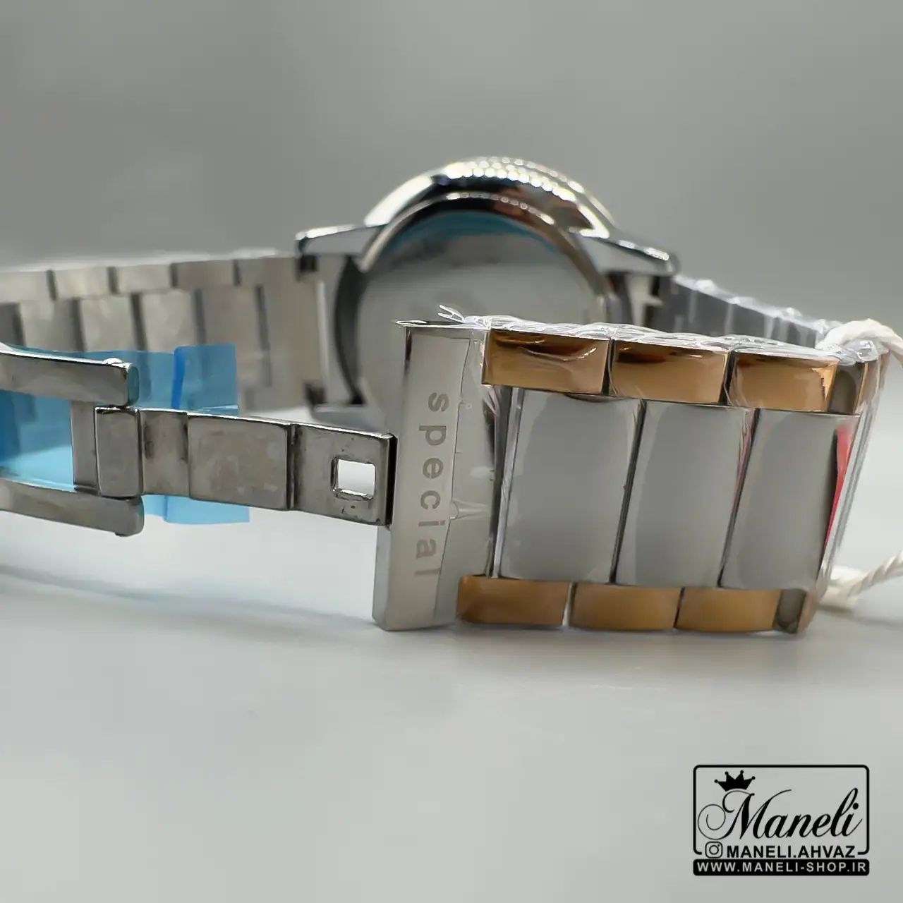 - ترکیب رنگ رزگلد و سیلور: هارمونی چشمنواز رزگلد و سیلور، این ساعت را به یک اکسسوری خیرهکننده تبدیل میکند که با هر رنگ پوست و استایلی به زیبایی ست میشود.
