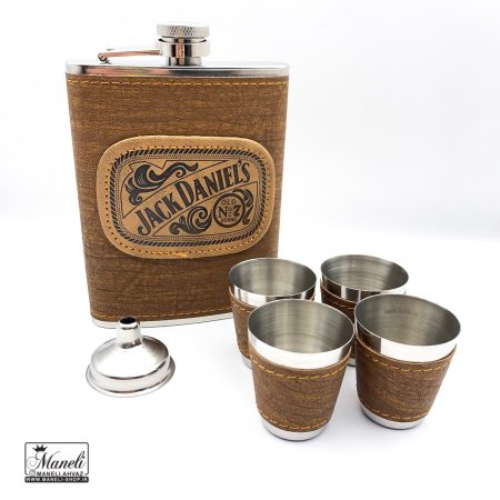 ست شات و هیپ فلاسک روکش دار با رنگ کرمی