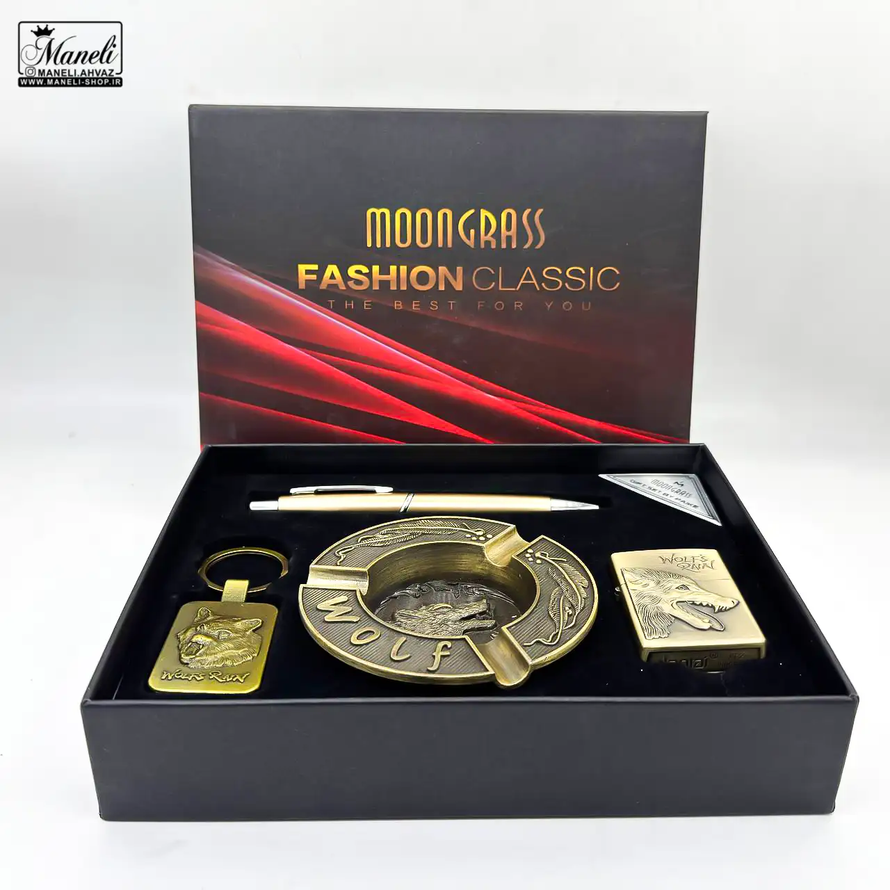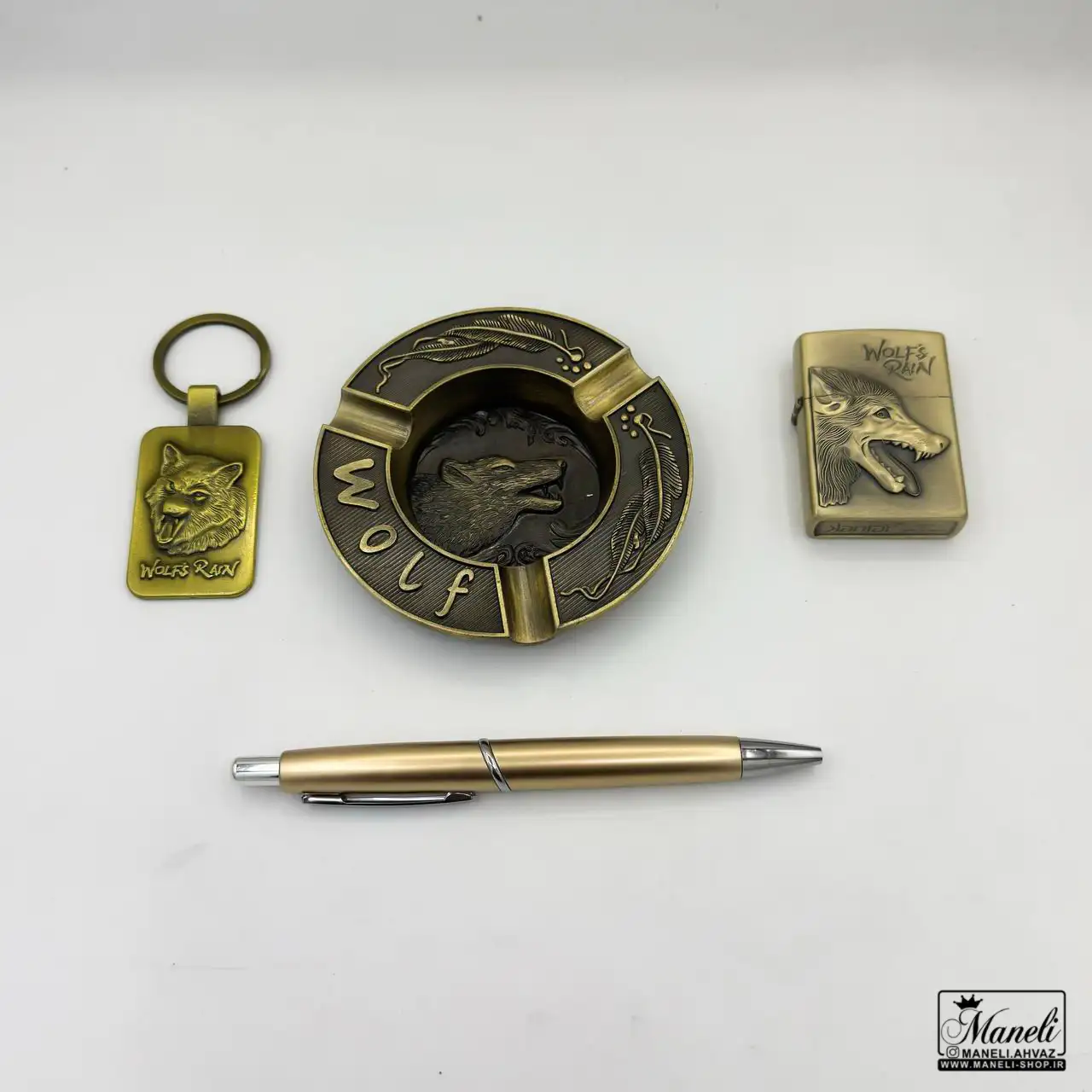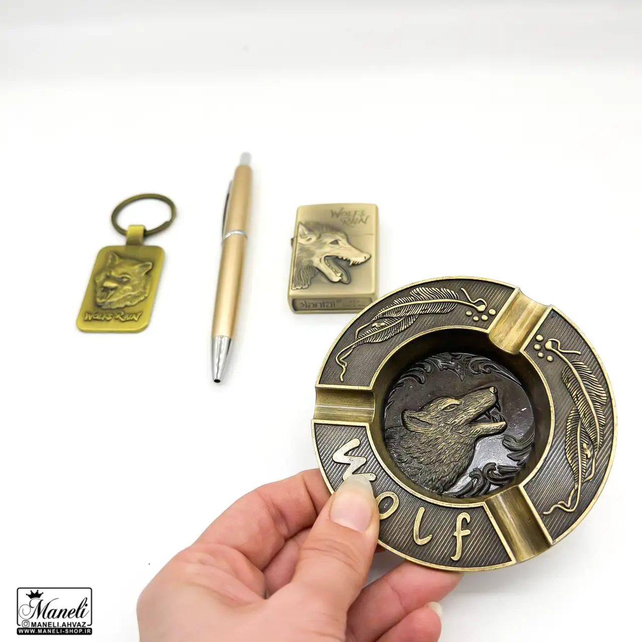 ست هدیه ای زیرسیگاری ، فندک ، جاکلیدی و خودکار طرح گرگ